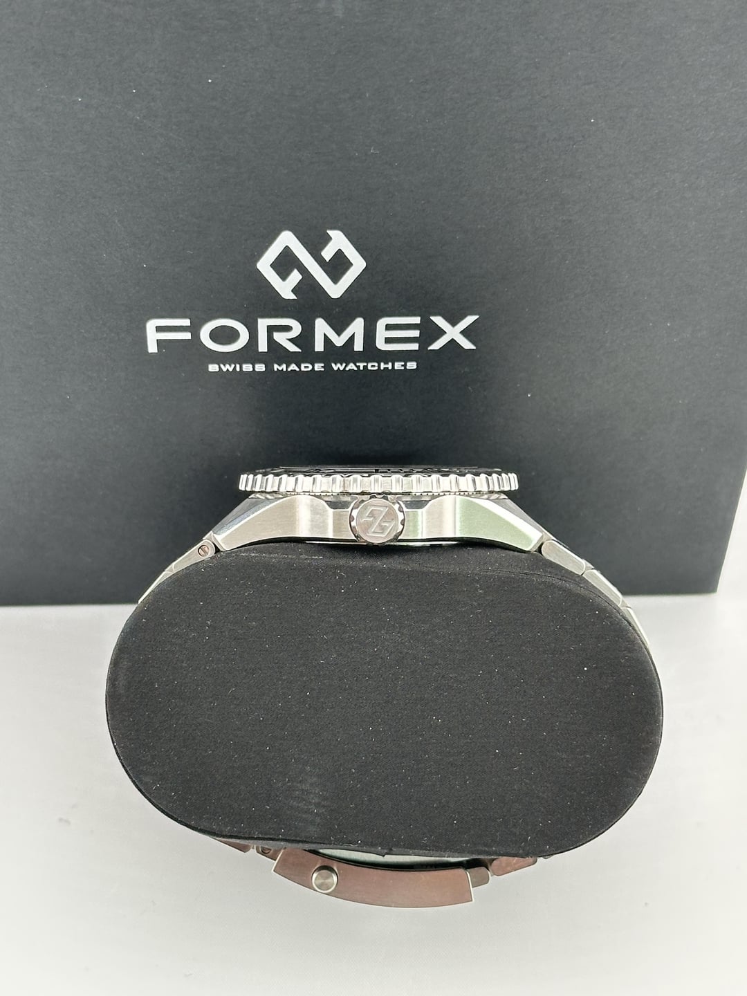 Hi WatchEx, selling this Formex Baby Reef 39.5mm in the silver dial and black ceramic bezel configuration. Catch and release for me as I wanted the size to work but I’m still leaning towards smaller watches. Watch is like-new with just a few micro scratches on the clasp, but otherwise in excellent condition. Watch includes full original set with box and papers, warranty card is dated 3/8/2025 with a 3-year warranty. Asking price of $1,200 via PayPal including FedEx shipping to CONUS only, ships from the Washington, DC area. Save about 40% off the MSRP of $1,990! Not looking for trades. Please comment and PM/Chat if interested! Album: [https://imgur.com/a/formex-baby-reef-39-5-u0QzoyS](https://imgur.com/a/formex-baby-reef-39-5-u0QzoyS) Timestamp: [https://i.imgur.com/oPeX6Wz.jpeg](https://i.imgur.com/oPeX6Wz.jpeg) Watch Specs: * 39.5mm diameter, 11.0mm thickness, 45.5mm lug to lug, 22mm lug width. * Movement is the Sellita SW-300, officially certified COSC chronometer, beating at 4hz with a 56 hour power reserve. Runs at around -2 sec per day in my use. * 300 Meters of water resistance and sapphire crystal with AR. * Stainless steel bracelet has a quick adjust mechanism, as well as a quick release function for the spring bars for super easy strap/bracelet swapping.