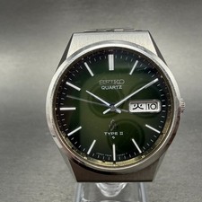 | Seiko Type II Watch Men 36mm Green Dial Silver Tone Daydate 7546-8080 New Batt royaltywatches (10729) |