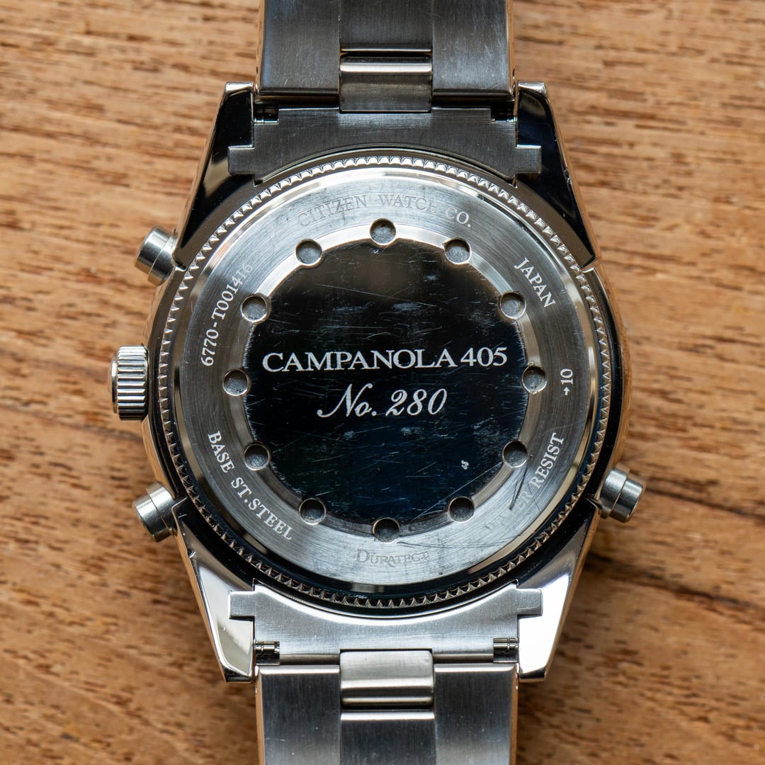 # Reference: **Model:** Citizen Campanola "Grand Complication" CTU57-0821 Minute Repeater **Timestamp:** [https://imgur.com/a/x6fnWfY](https://imgur.com/a/x6fnWfY) **Album:** [https://imgur.com/a/UYqt16T](https://imgur.com/a/UYqt16T) # Features: **The Functionality.** The Campanola “Grand Complication” is aptly named. A moon phase, leap year perpetual triple calendar, 12-hour split-time chronograph, 24-hour dial, and a minute repeater. Most of those functions won’t need any explanation, but a minute repeater deserves to be talked about. **The Minute Repeater.** When you press and hold the minute repeater button, a chime plays different sounds to indicate the time. A musical Morse-code for time keeping, if you will. Interestingly, the chime can be set independently of the time displayed on the watch, allowing it to function as a GMT “hand.” **The Craftsmanship.** The grandeur of this watch extends beyond its movement. It features a double-domed, anti-reflective sapphire crystal, a hand-lacquered urushi dial with flecks of embedded titanium that give it a starry aesthetic, and Citizen’s patented “Duratect” coating - a surface treatment that makes the metal five times harder than steel. Like Grand Seiko watches, all Campanolas are hand-made and hand-assembled in Japan by Citizen’s master craftsmen. # Details: **The Condition**: In good condition overall. Just serviced by Campanola in Japan. Small scratches can be seen on bottom of the bezel near 5 o’clock, and the left of the bezel near 10 o’clock. The sides of the case also show signs of wear. On the OEM bracelet. **Scope:** No box or papers. **Movement**: 6770 Minute Repeater Quartz **Dimensions:** \- Case Width: 39.0mm \- Case Thickness: 16.2mm (measured to the top of the bubbled crystal. The case itself is roughly 11.5mm thick) \- Bracelet: Fits up to a 7.2 inch wrist **Price:** Priced at **$1195** \+ shipping. I accept various payment methods. Transaction fees paid by the buyer. Not looking for trades. **Of note:** Nothing to report.