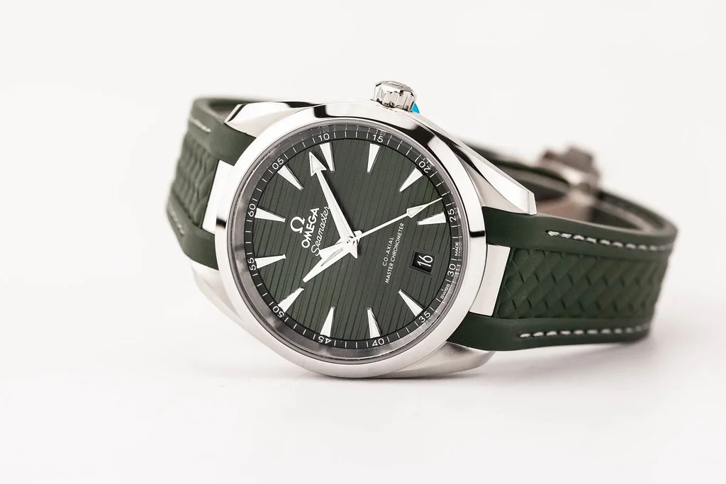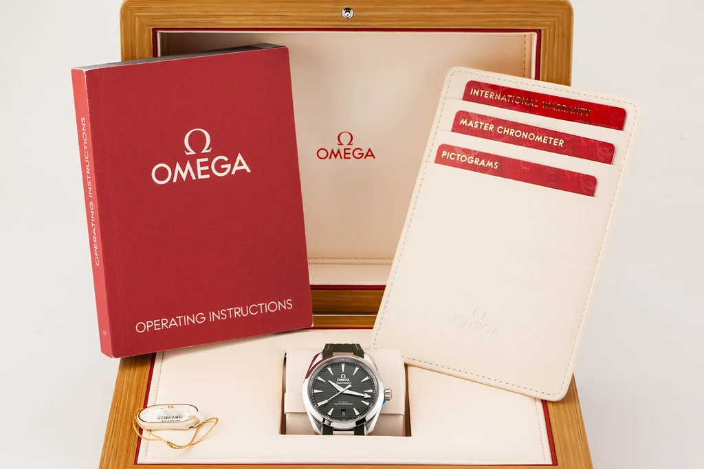 Up for sale is a brand new Omega Aqua Terra 8800 38mm Green Dial on Rubber Strap, reference # 220.12.38.21.10.001 It comes complete with all boxes, papers, booklets, hang tag and Omega Warranty Card dated May 2025.