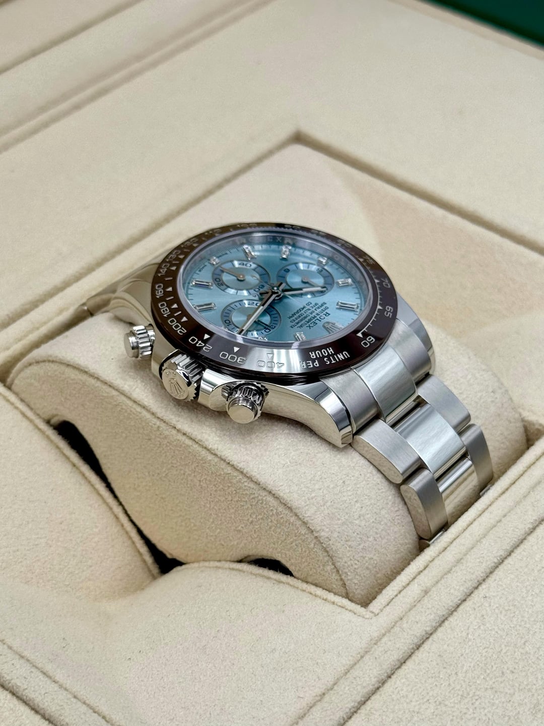 | Rolex Cosmograph Daytona 116506 40mm Platinum Index Icy Blue Chestnut Watch timeluxury (387) |