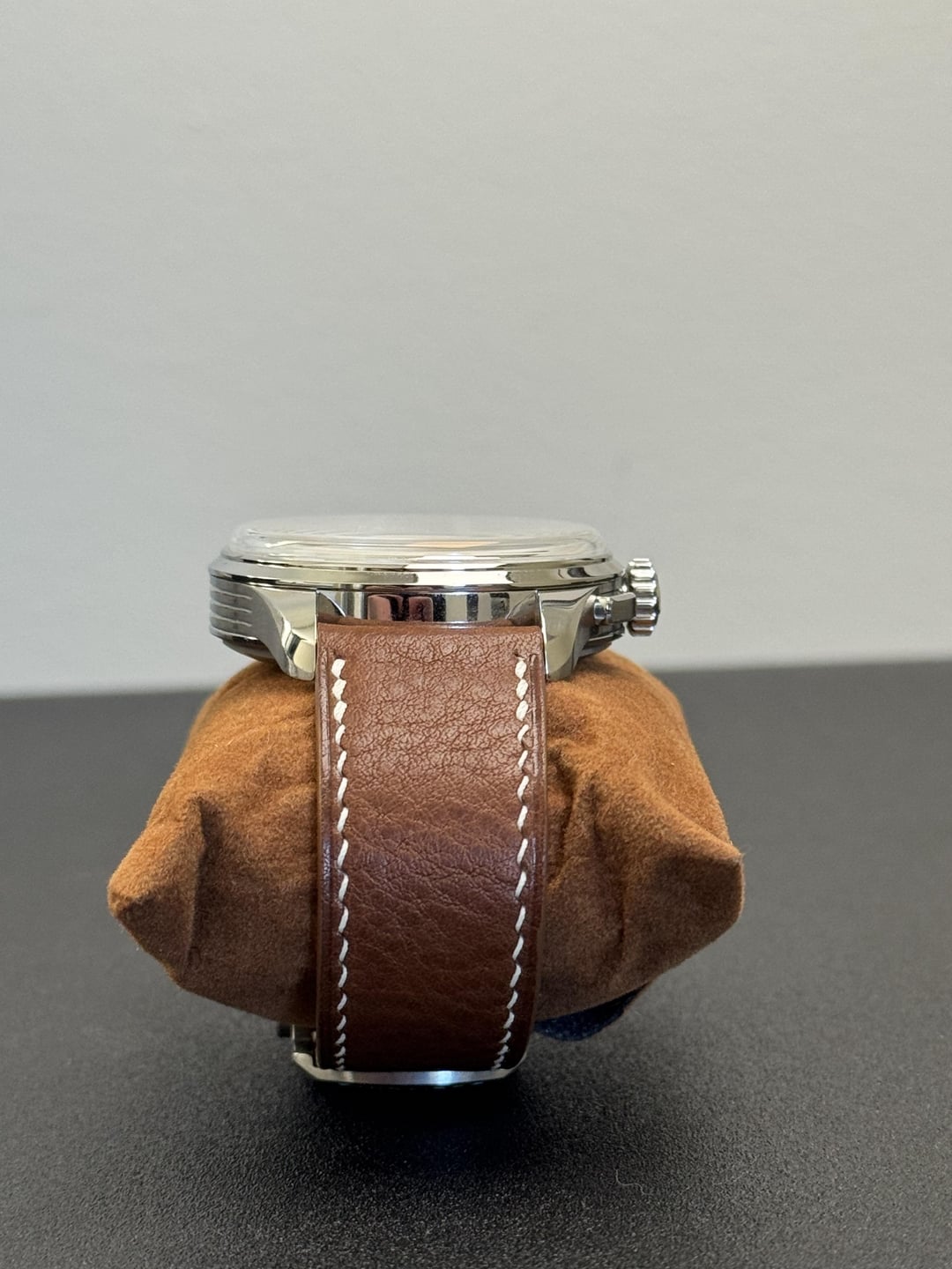 Begrudgingly listing one of my favorite watches in an effort to fund a 16570 😩 This is a pristine, 10/10, complete set Breitling Premier B09 with warranty card dating through 9/26/2028. It is difficult to capture the beauty of this watch in photos, being far more captivating in person with so much depth in the dial, dancing in different lighting. I had a custom whiskey pebbled vacchetta strap made by Velle Alexander specifically for this watch to use with the OEM Breitling clasp. This greatly elevates the watch in my opinion, and is also the softest, most comfortable strap I’ve ever worn. This was a $350 strap that I’ve worn under 10 times. Priced at $3,975 net to me. Payment via PayPal, Goods & Services fee if applicable to be paid by the buyer as well as shipping expenses. Shipping from the US.