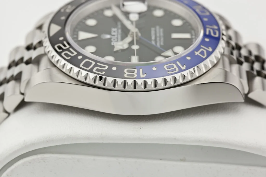 Up for sale is a brand new Rolex GMT Master II Batgirl Jubilee, reference # 126710BLNR. It comes complete with all newly redesigned boxes, papers, booklets, hang tag, and Rolex Warranty Card dated May 2025.