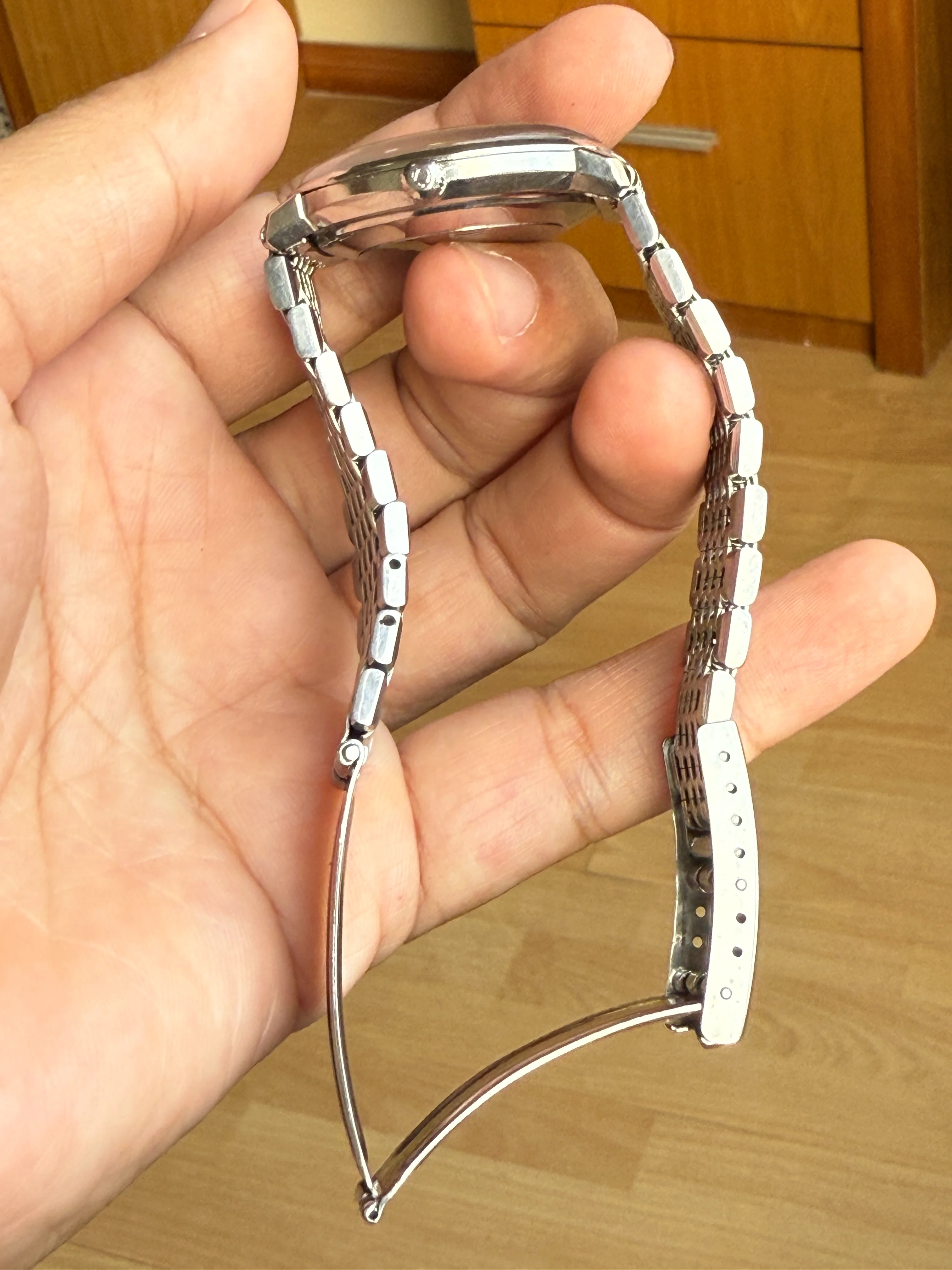 - Bracelet: Original Omega 7 row bracelet reference 1037 with 564 end-links in good condition; triple fold clasp featuring micro-adjust with Omega logo.