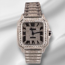 | Cartier Santos Medium 35mm Custom Iced 13ct Diamonds Ladies Steel Watch 4075 swissice (5473) |