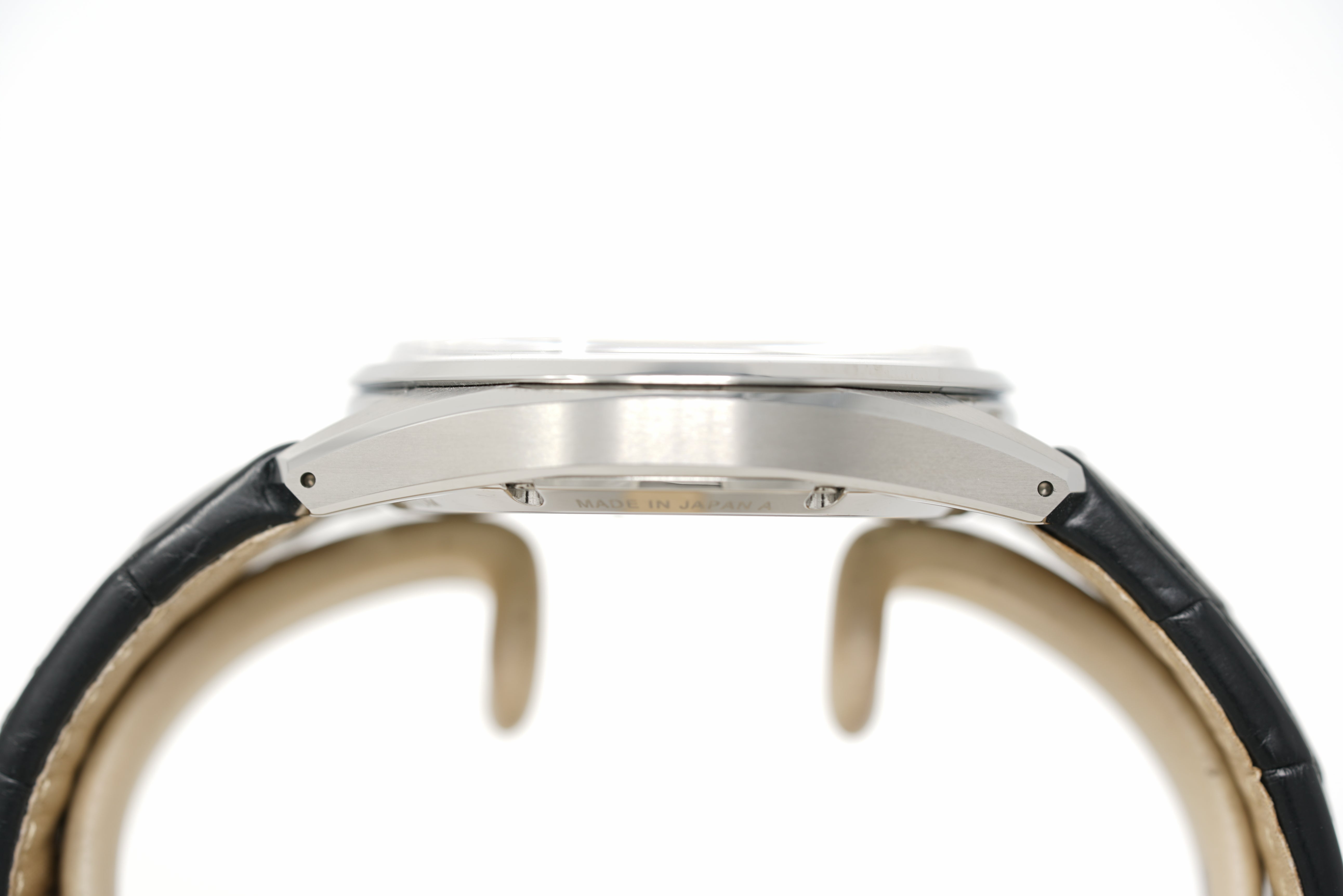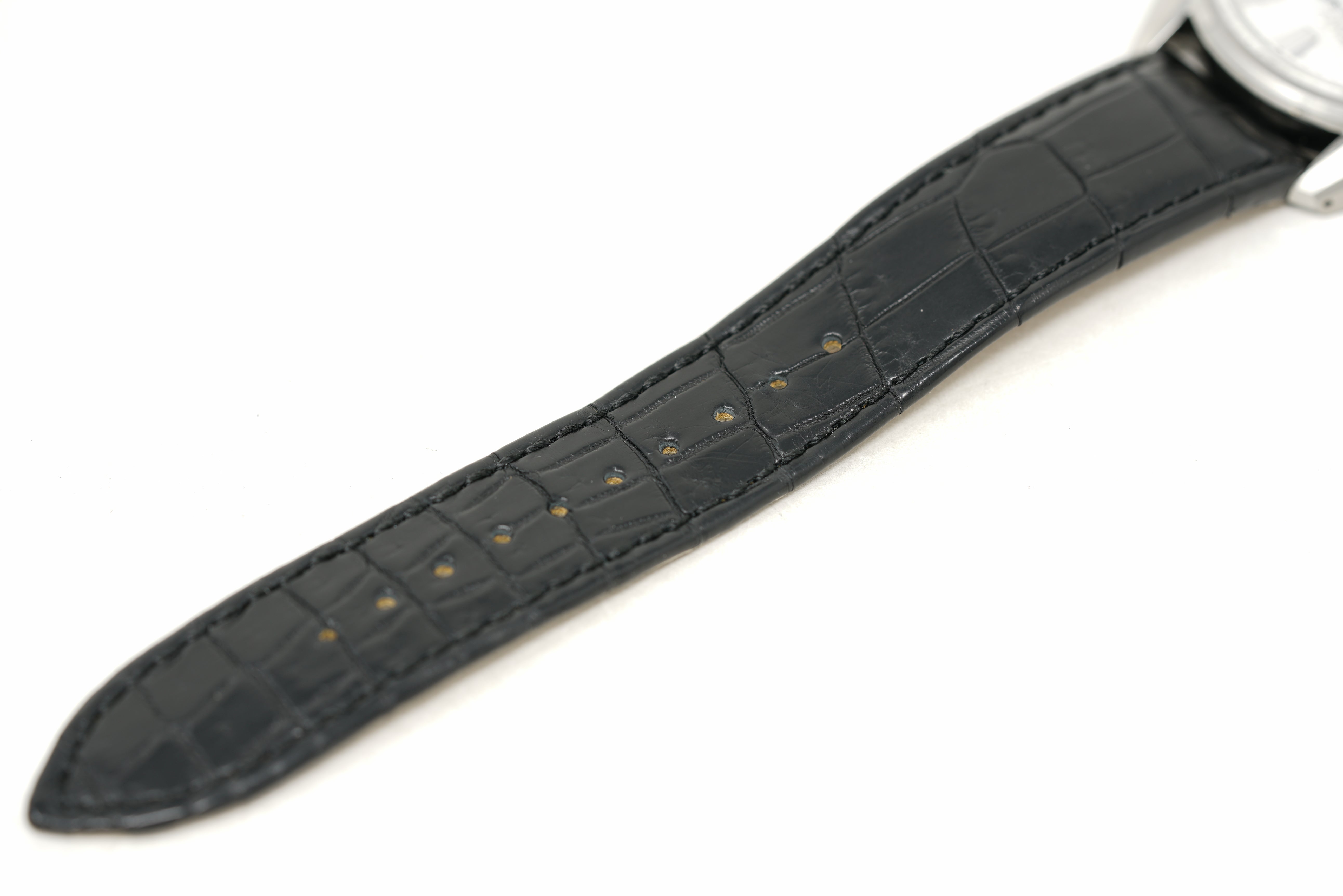 This pre-owned watch is in 95% condition due to faint marks on the back of the lugs and throughout the case. The strap is in 96% condition due to minor wear and creasing. Originally purchased in August 2024, this watch comes with its inner and outer box, digital instruction manual, warranty card, and the one-year Topper Pre-Owned Select warranty.
