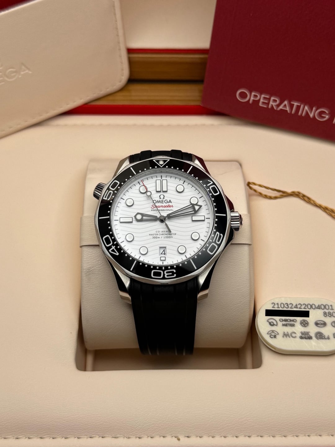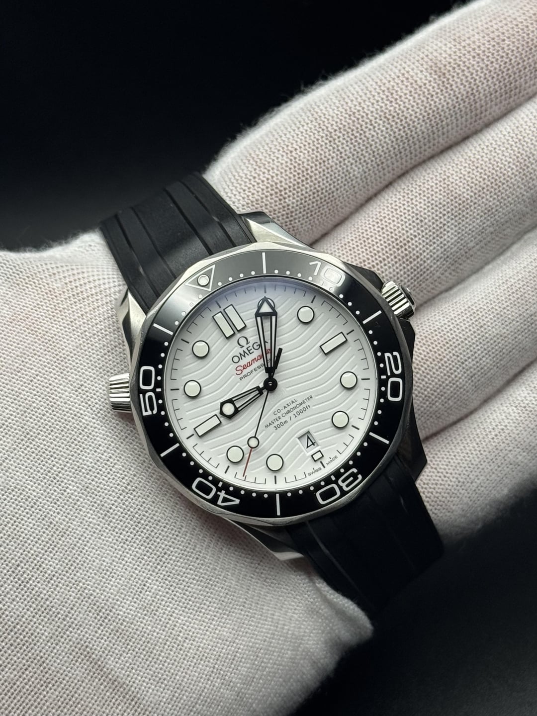 One of the most desirable modern Omega watches — the 2024 Seamaster “Panda” features a crisp white ceramic dial, black ceramic bezel, and the unmistakable DNA of the James Bond series. Powered by the Co-Axial Master Chronometer Caliber 8800, offering METAS-certified accuracy, 60-hour power reserve, and 15,000 gauss magnetic resistance. Highlights: • Full Set: Outer & inner box, warranty card, pictograms, manual, and original tags • 2024 model – under Omega factory warranty until 2029 • White ceramic dial with laser-engraved wave pattern and bold black markers • Omega Co-Axial escapement & silicon balance spring • Excellent condition – only very light signs of wear. Running flawlessly Model with growing collector demand. Serious presence on the wrist, ready to wear or hold as an appreciating asset. Price: $4,400 shipped CONUS with professional packaging included. Feel free to DM with any questions — happy to help.