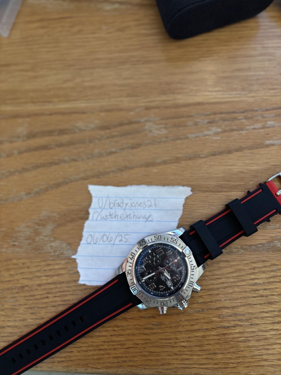 Breitling Super Avenger Ref a13371 AM rubber strap, no original bracelet. Other than that, Comes with the full set Including original box, booklets, and certifications as shown! Could use a light polish, but it’s in good used condition. $1650 plus label 🔥