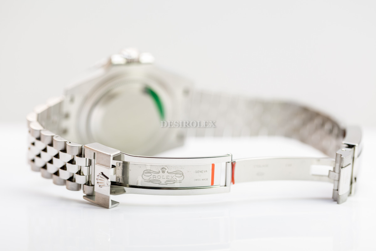 on Jubilee Bracelet with Black and Blue Ceramic Bezel on Black Dial.