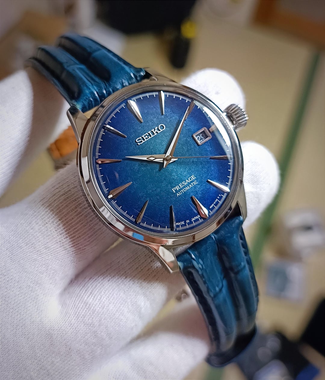 Hello r/WatchExchange, I am currently selling a Seiko Presage SARY085 Starlight Cocktail Time Star Bar JDM limited edition (only 1,300 pieces), pre-owned condition. The watch comes paired with a blue calf leather strap and an authentic Seiko deployant clasp. This is a collector’s piece, inspired by the original "Starlight" cocktail crafted at Star Bar in Ginza—a place deeply connected to both Seiko and the refined cocktail cultures. Condition: Pre-owned; there are some small scratches, but the watch still looks very nice overall. Specifications: Case diameter: 40mm | Lug width: 20mm Movement: Seiko 4R35 with 41-hour power reserve Dial: Inspired by the “Starlight” cocktail from Star Bar in Ginza, beautifully incorporated into Seiko’s Cocktail Time collection. Crystal: Curved Hardlex, with a few tiny hairline scratches Strap: Blue calf leather strap with authentic Seiko deployant clasp. This is a rare and hard-to-find timepiece, perfect for daily wear or for collectors. Included: Full kit as shown in the pictures. 📸 Photos:https://imgur.com/a/BcPqYXl ⏳ Timestamp:https://imgur.com/a/5HQMt2T Feel free to ask any questions! Pricing, Payment & Shipping: Price: $735 (shipping not included), no trades. Payment: PayPal Friends & Family or Goods & Services (+4.6% fee). Shipping: FedEx Express, worldwide delivery in 2–4 days ($50–$80 depending on destination). Thank you!