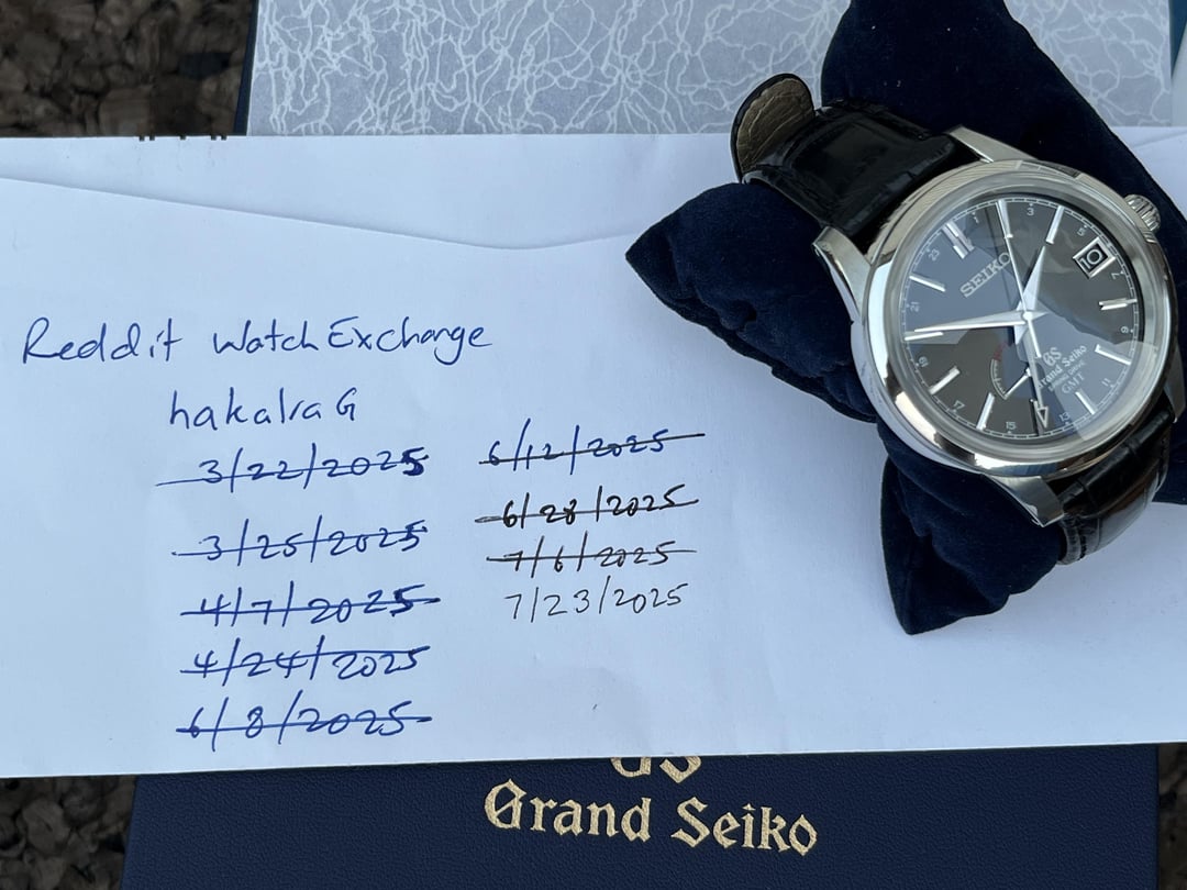 **Asking $2650 oro (CONUS insured shipping on me, fees if any on you)** * Absolute Full set with rice paper, paperwork, inner and outer boxes * Tim Mosso YouTube Review: [https://www.youtube.com/watch?v=Kb22YMyorcs](https://www.youtube.com/watch?v=Kb22YMyorcs) * Diameter 40mm, 19mm lug width, 48.3mm lug-to-lug * Generously domed sapphire crystal * 100m water resistance rating * Spring Drive GMT movement with a 72-hour power reserve * Keeps amazing Spring Drive time as you would expect and is a flyer GMT (i.e. the local hour hand adjusts in one-hour jumps) * OEM Strap and deployant * Dynamic anthracite dial that can look deep black, or a beautiful gray brown, especially in brighter light * This is the Grand Seiko “Elegance” case, and while it was briefly updated with GS only branding as the SBGE227. Note the current GS catalog does not have a Spring Drive GMT available in this case style * No dings, just a few rub marks where shirt sleeves would touch (very common on the GS Zaratsu polishing) * Full boxes, papers (including original guarantee paperwork from a Japan AD), rice paper, and outer sleeve plus eBay authentication cards (though as a spring drive with a sapphire case back, it’s obvious what this is!) I’m a private collector slimming my collection down and have 100+ transactions on WatchExchange – I’m happy to talk on the phone or FaceTime once you are sure you’d like to proceed. Straight sale strongly preferred and priced to reflect this. Thank you for reading my post, and thanks also to the Mod community on WatchExchange.