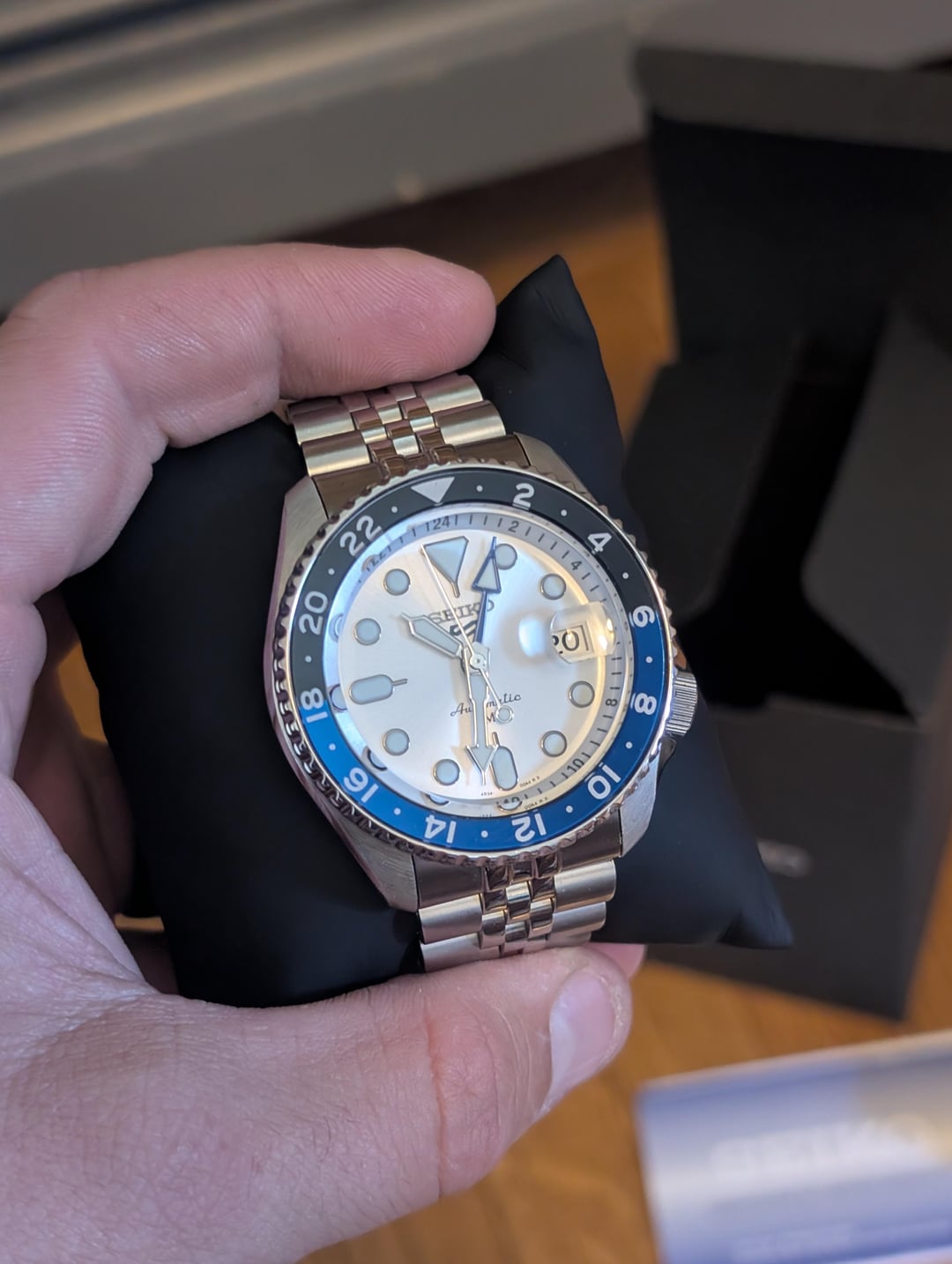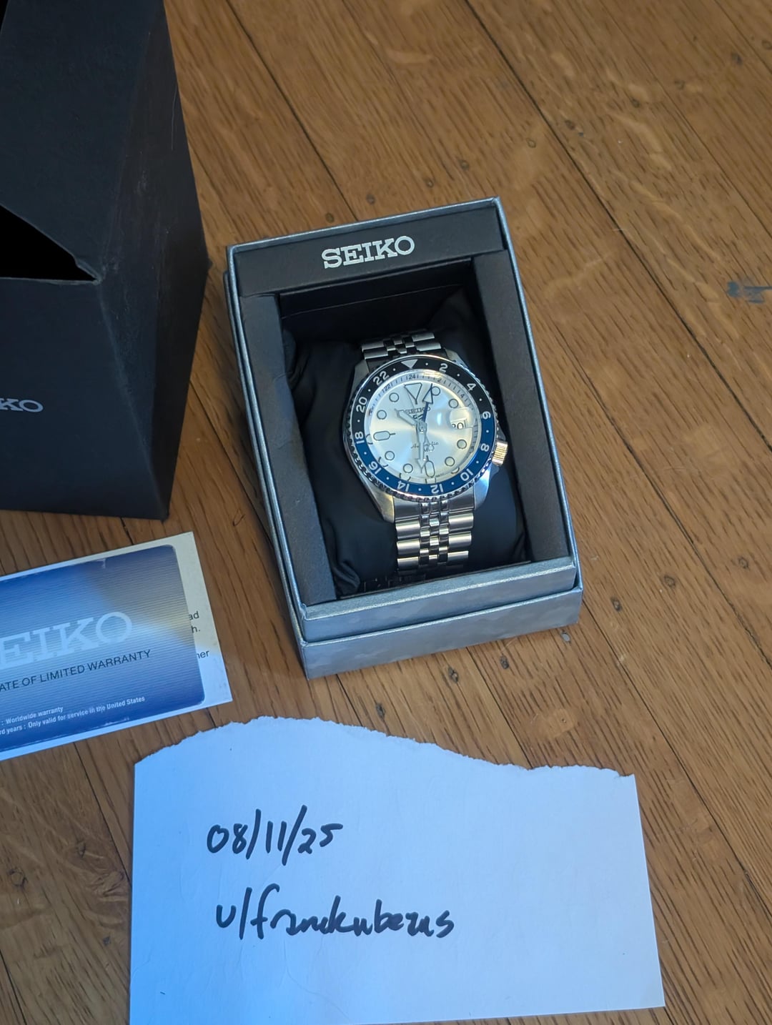 Hi everyone, today I have for a Seiko SSK033. Looking for $250obo shipped in the US. Watch pre-owned but in above average condition. Just a few desk dives on the clasp. Full kit, included all links, cards. Specs: Case size-42.5mm Seiko 4R34 auto GMT movement Hardlex crystal 100m WR