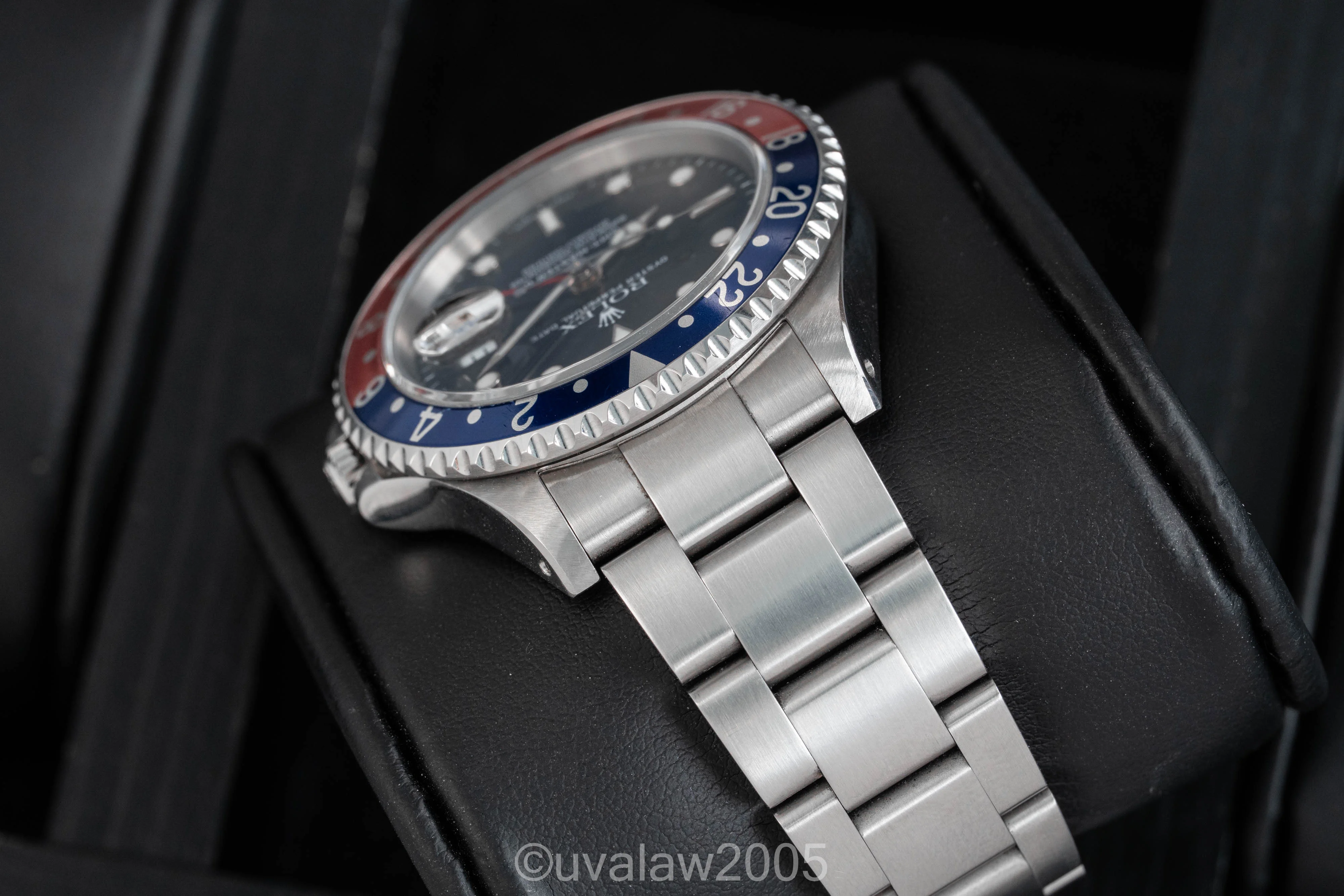 For sale is my Rolex GMT-Master II reference 16710 with holes case, solid endlinks, and three OEM bezel inserts. I bought it earlier this year with a black bezel from Angel City Time (original sales post here), and then purchased vintage OEM Pepsi and Coke inserts from jfullm42time.