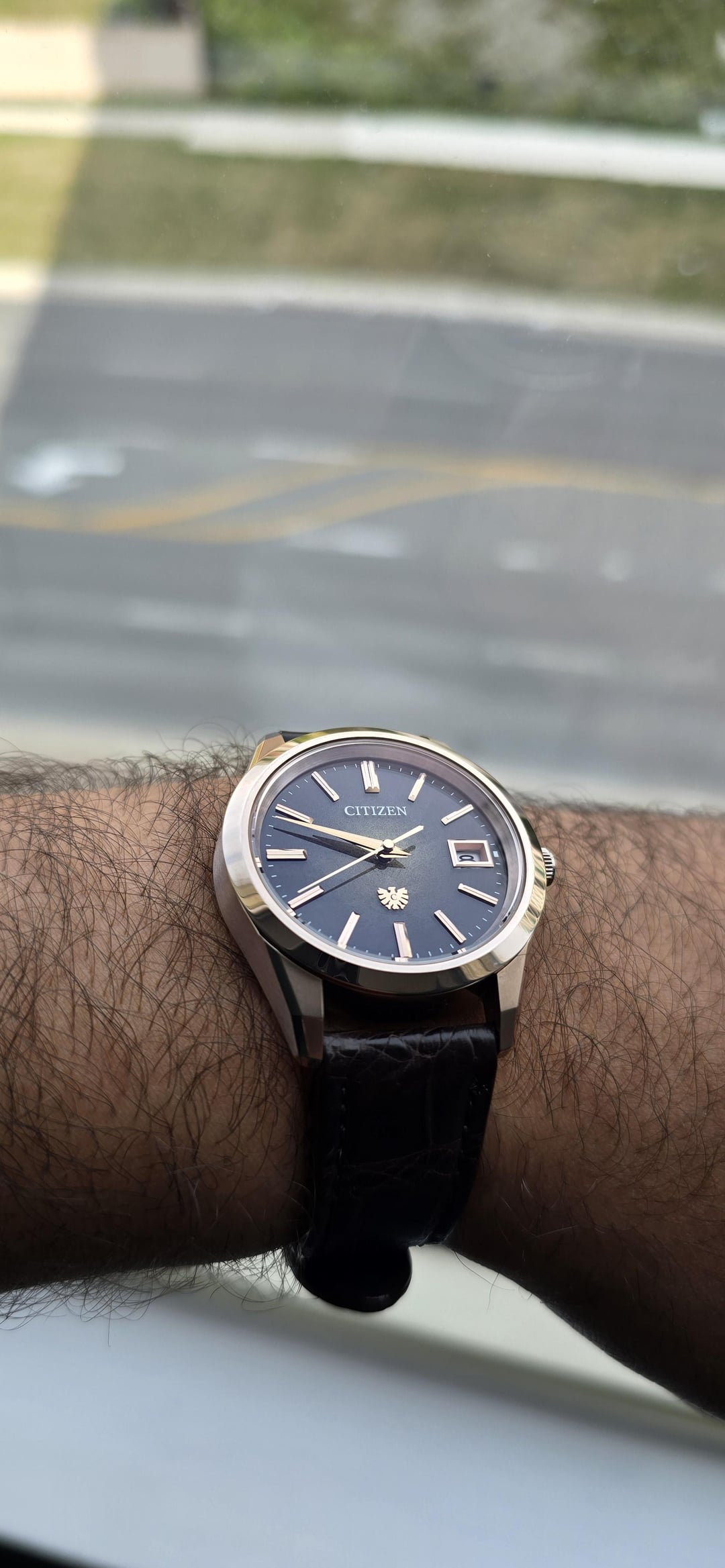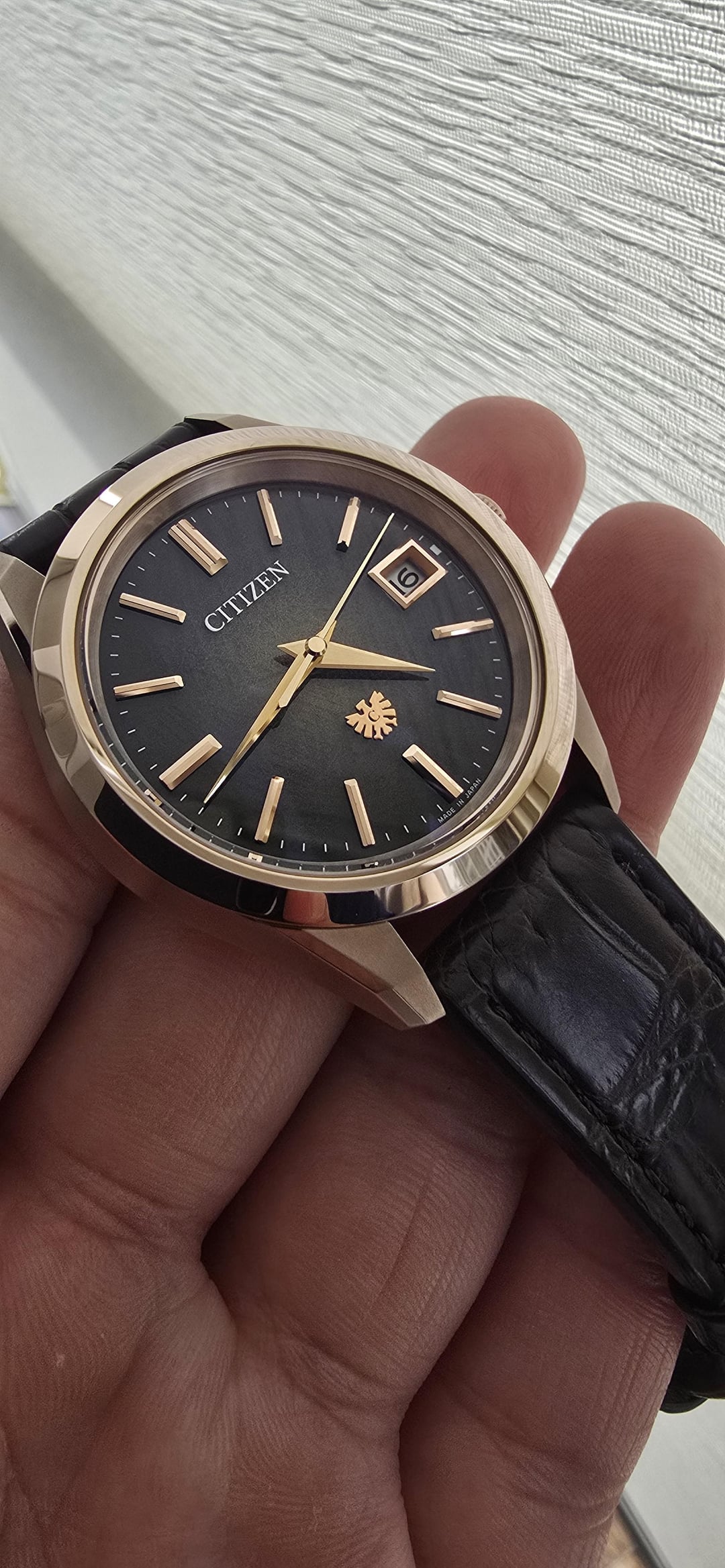 Citizen “The Citizen” AQ4106-00W (Limited Edition, 1 of 300) One of the very few quartz watches that has genuinely challenged the status quo — sparking great discussion on r/Watches: 👉 https://www.reddit.com/r/Watches/s/WSpEouzmtJ If you’re hunting for that “something different” to add to your collection, this might be it. A technical marvel in rose-titanium — warm in tone, ultra-light on the wrist, and finished to a standard that rivals Grand Seiko. The way the indices, hands, and dial play with light has to be seen in person to be appreciated. Citizen’s own words: “These models are equipped with a high-accuracy light-powered Eco-Drive movement with annual accuracy of ±5 seconds, eliminating the need for regular battery changes. All The CITIZEN models with high annual accuracy also feature a perpetual calendar that automatically adjusts to the end of each month, including leap years, until February 28, 2100. These models are also equipped with CITIZEN’s proprietary impact detection and lock function, an automatic hand correction function in the event of deviation, and a calendar that changes instantly at the stroke of midnight.” 📌 Details: • Limited Edition: 1 of 300 • Case/Bracelet: Rose Titanium on Alligator Leather strap + deployant clasp. • Movement: High-Accuracy Eco-Drive (±5 sec/year, perpetual calendar) • Condition: LNIB 9/10 • 💲 Price: 3100 CAD / 2250 USD + shipping Feel free to reach out with any questions about the watch or shipping. I will ship from Canada for Canadian buyers and make the trip across the border for US buyers to avoid any import charges. Thanks for looking!