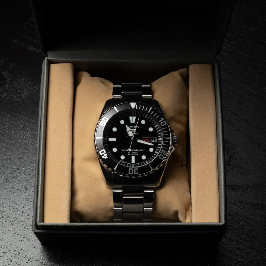 Description: Selling my Seiko 5 Sports SNZF17K1, known as the "Sea Urchin." This was one of my first automatic watches, but is not getting much wrist time anymore. This model has been discontinued and is popular due to its resemblance to classic dive watches. The watch is in good condition, with some scratches along the bracelet from light use. Dial and Hardlex crystal are unscratched. Specifications: Case Diameter: 41.5mm (without crown) Lug-to-Lug: 49mm Lug Width: 22mm Thickness: 13mm Movement: Seiko 7S36 automatic (non-hacking, non-hand-winding) Water Resistance: 100m Crystal: Hardlex Bezel: Unidirectional rotating Features: Day/date complication, luminous hands and markers Included: Original Seiko stainless steel bracelet + extra links. Price: $250 shipped within CONUS. Payment via Paypal F&F or G&S + 3% to cost. Shipping: USPS Priority Mail with tracking. Happy to provide additional photos, facetime, etc as I’m just getting started buying and selling in here.Timestamp - [https://imgur.com/a/rQOrnOf](https://imgur.com/a/rQOrnOf)