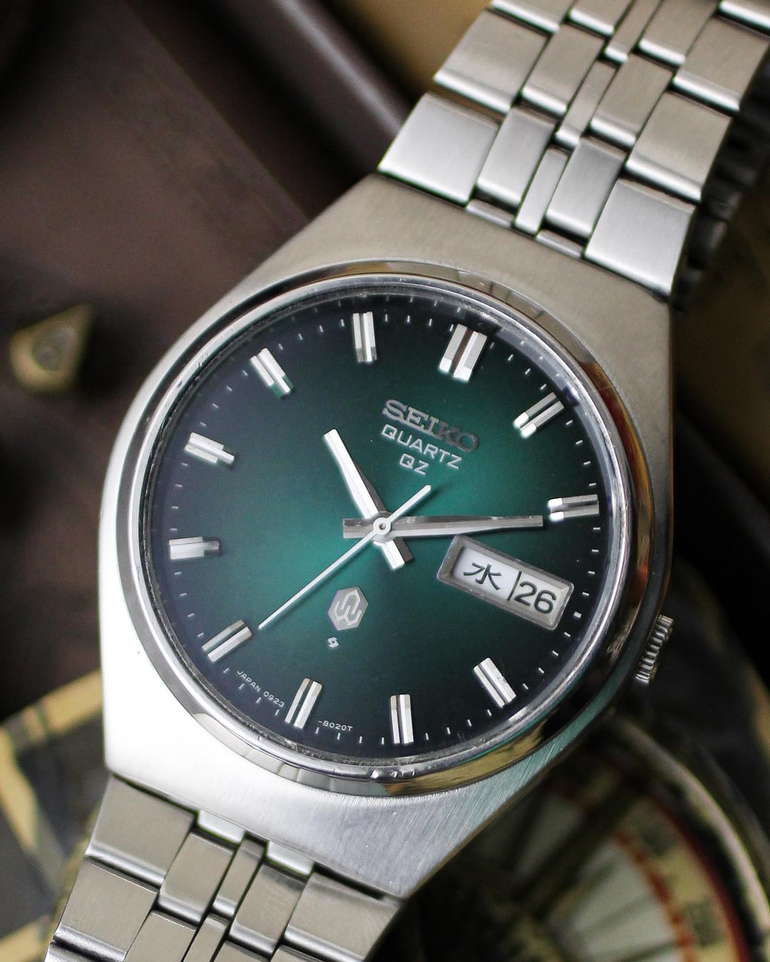 🔹Timestamp: [https://postimg.cc/8F86QBG3](https://postimg.cc/8F86QBG3) A vintage Seiko QZ from the late 1970s, reference 0923-8020, showcasing a rare and striking green dial. Known for its early quartz precision and elegant design, this model stands out among Seiko’s pioneering quartz era pieces. 🔹Features ▫️Model: Seiko QZ 0923-8020 ▫️Movement: Quartz, Cal. 0923 (high-accuracy quartz) ▫️Dial: Rare green textured dial ▫️Calendar: Day/Date display with quickset function ▫️Case: Stainless steel, polished finish ▫️Crystal: Mineral glass ▫️Country of Manufacture: Japan 🔹Measurements ▫️Case diameter: \~37mm (without crown) ▫️Lug-to-lug: \~42mm ▫️Thickness: \~10mm