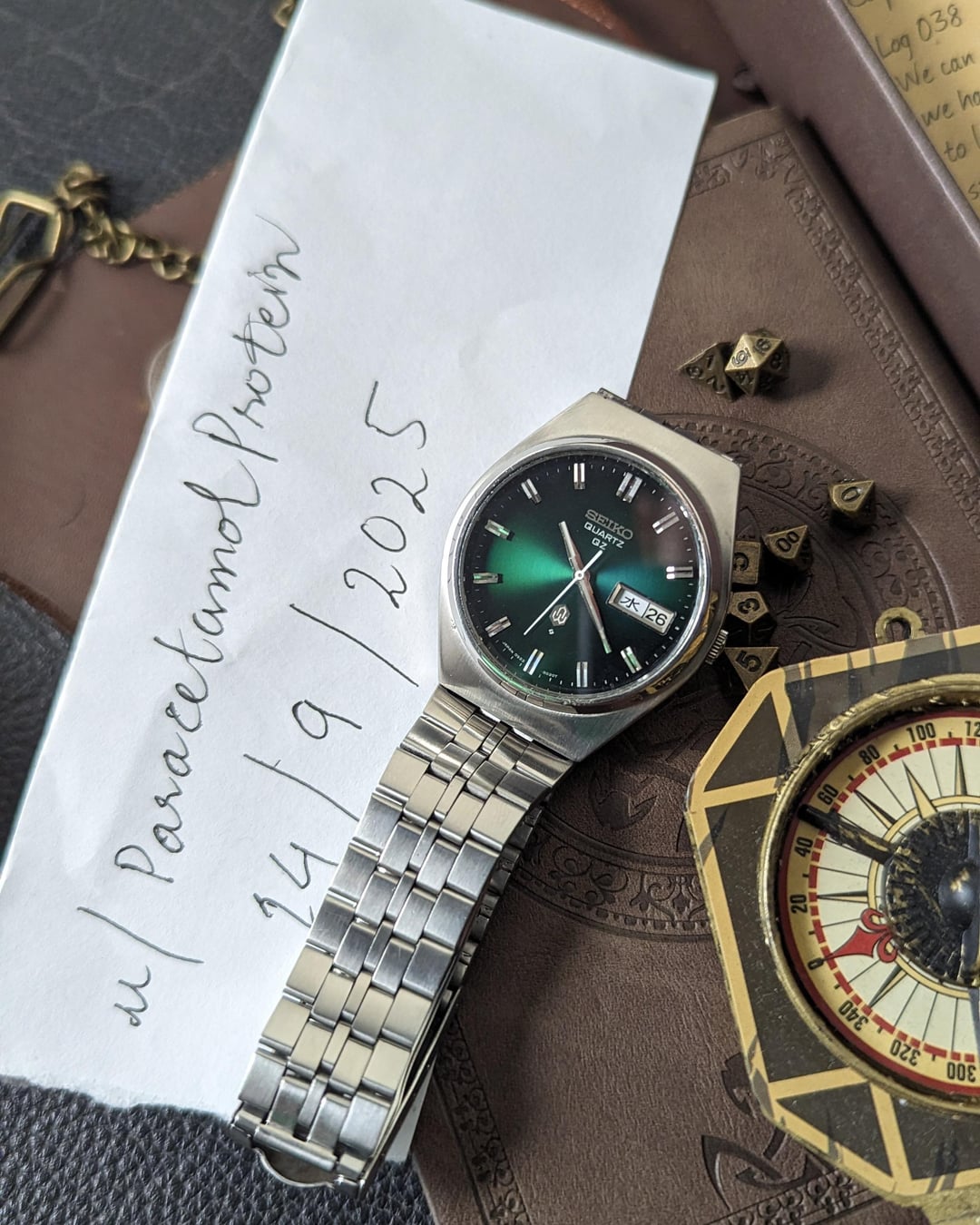 [WTS] Seiko quartz QZ Fume green dial - 0923-8020 - Kanji + Eng day/date calendar - $279 4