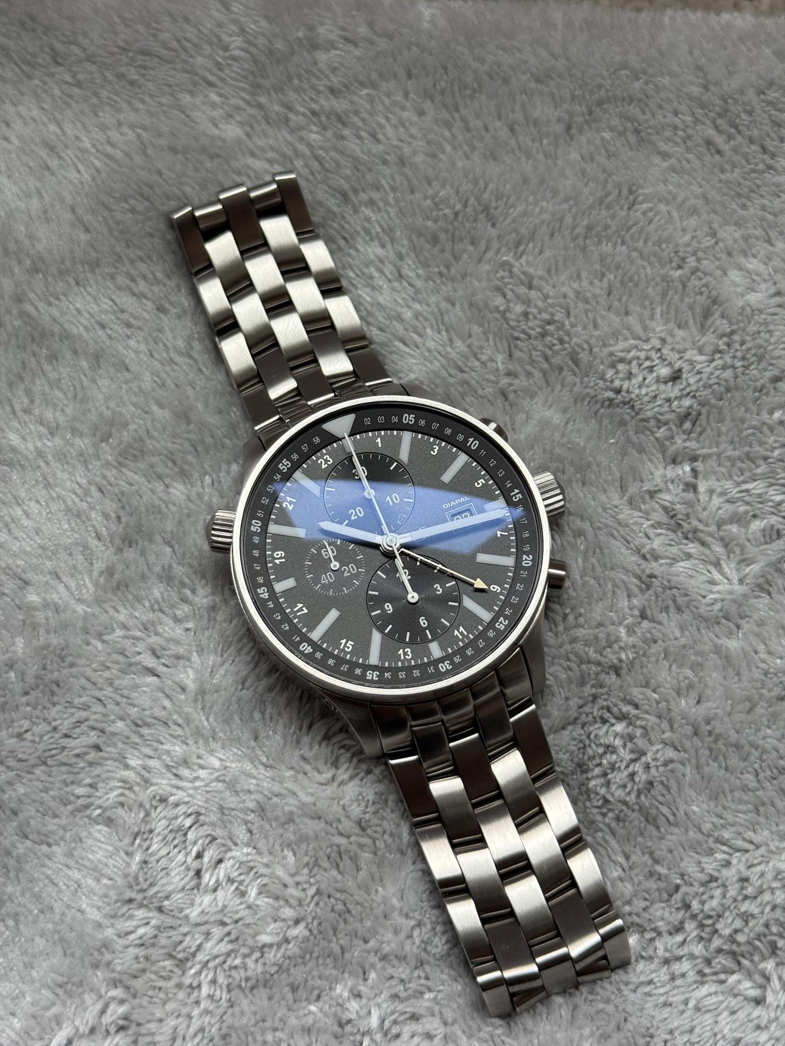 I am selling my Sinn 900 Diapal on the fine link bracelet. I am not the original owner. Included is the full kit plus a Sinn leather strap. This watch has a lot of features and Sinn technology including GMT, Column wheel Chronograph, Date, Tegimented case and bracelet, Ar dehumidifying, Magnetic field protection, works from -45 degrees celsius to 80 degrees celsius, low pressure resistant, 200m water resistance, sapphire glass. Note the case back is nickel free but is not tegimented. Price: $2700 shipped CONUS. Shipped via USPS flat rate shipping. Let me know of any questions or additional images. Images:https://imgur.com/a/sinn-900-NtirRa8 Timestamp:https://imgur.com/KwUFInH