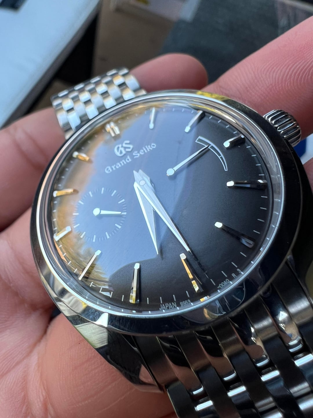 Hello, up for sale is my Grand Seiko SBGK009, a piece that really shows off what GS does best in their Elegance line. This is a manual-wind beauty with the 9S63 caliber, giving you that smooth small seconds at 9 and a clean power reserve at 3. Can’t even describe how beautiful the hands and indicators are, they are polished to perfection! The dial is a stunning gray lacquer that shifts in tone depending on the light, going from deep charcoal to a softer silver-gray. Wears super easy thanks to its slim profile and curved lugs. See below for all specs: • 39mm case • 44mm lug to lug • 11.6mm thick • 30m water resistant • Manual-wind 9S63 caliber • 72h power reserve • Dual-curved sapphire, AR coated • OEM gray crocodile strap w/ GS deployant clasp (both purchased separately – about $600 in extras) Condition is great with minimal wear. Crystal is clean, movement winds smoothly. Warranty card is dated 05/2021 with remaining warranty until 05/2026. Comes with complete full kit, for those who love to collect all original packaging : box, sleeve, papers, manuals, certificate, pouches, OEM strap/clasp (boxes for that too), and the GS bracelet. Retail was around $7,400, plus another ~$600 in extras for the strap and clasp, letting this one go for $4,200 shipped CONUS. No trades on this one please. Feel free to PM with any questions or requests for additional pics, thanks for looking!