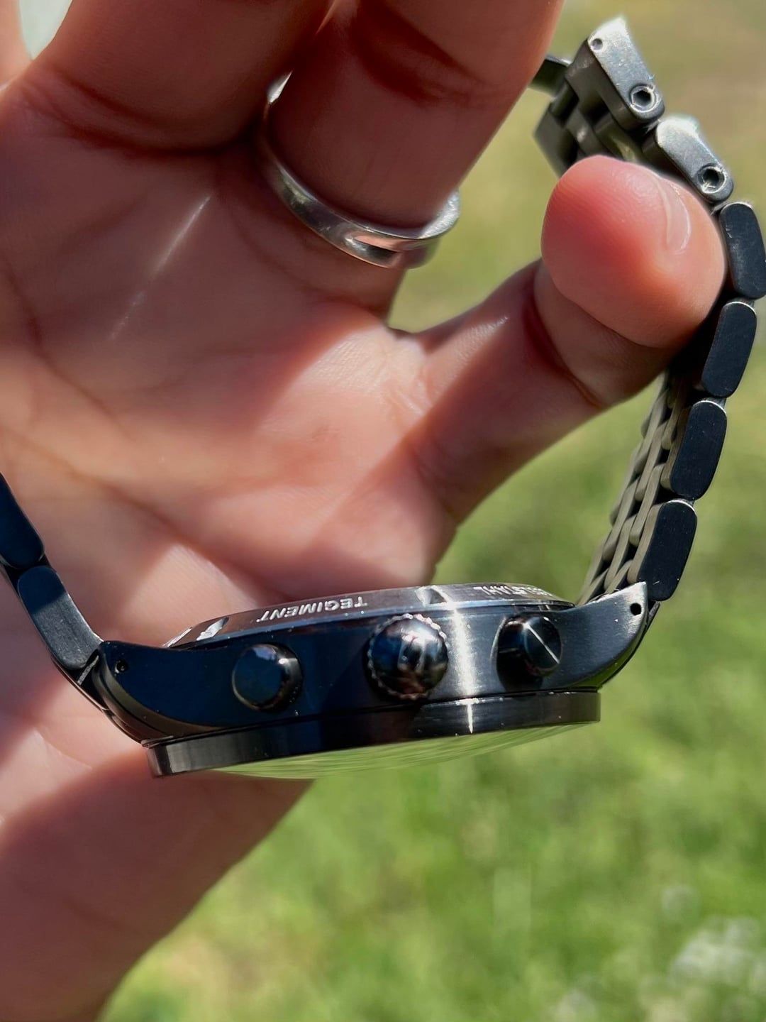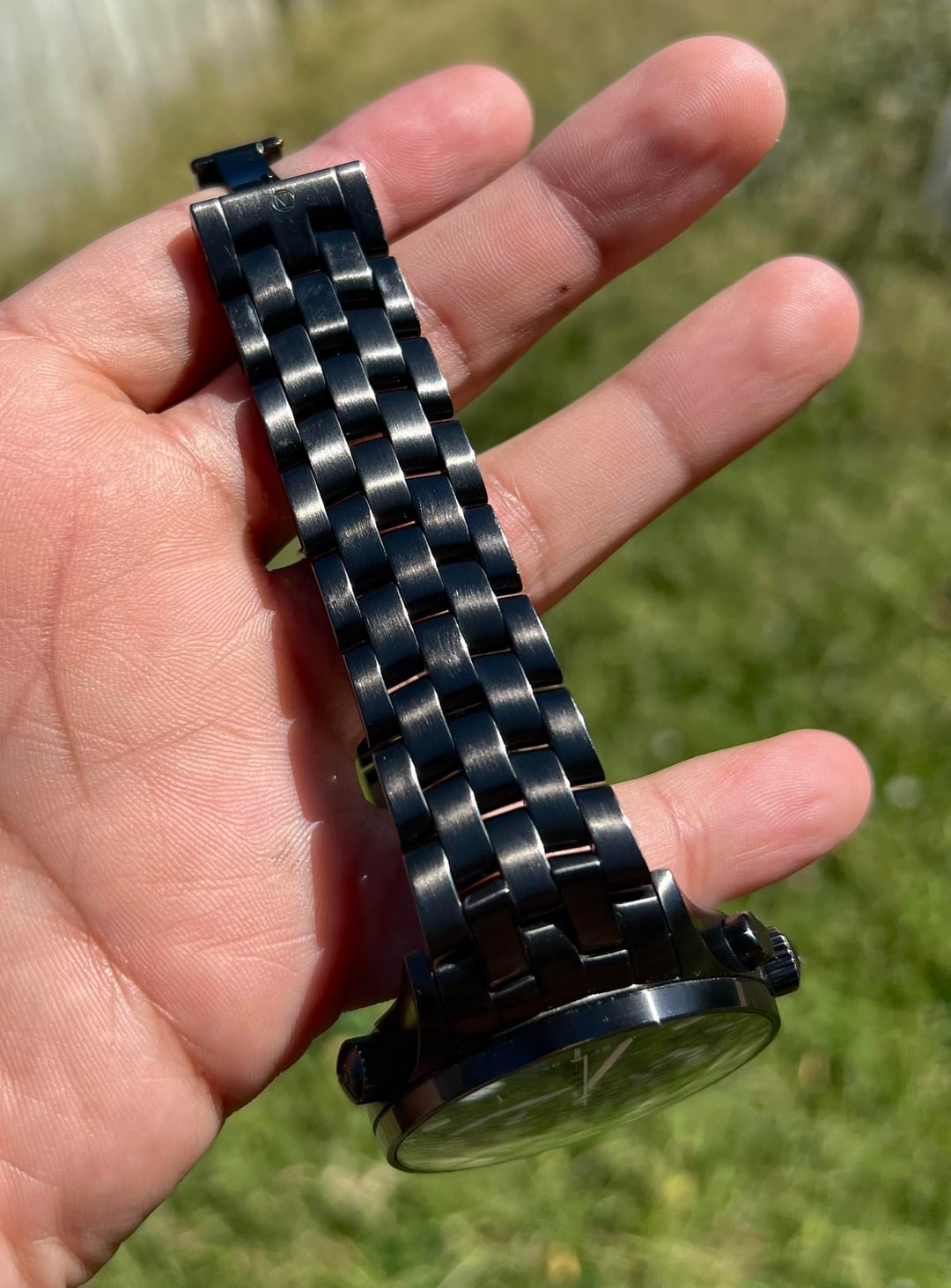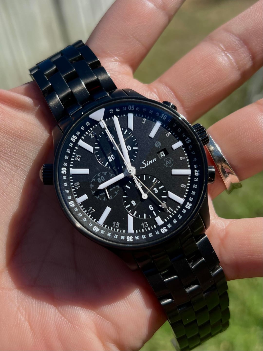 Hello, up for sale is my Sinn 900 DLC, a rugged tool watch with Sinn’s signature engineering. This all-black version on bracelet has a bold 45mm case that wears comfortably thanks to short lugs. The matte black dial is highly legible and complements the DLC case and bracelet for a sleek, stealthy look. What makes Sinn special is their engineering: the 900 DLC features a Tegimented case beneath the DLC coating for extreme scratch resistance, Ar-Dehumidifying Technology to keep the movement safe from moisture, and a case built to withstand the toughest conditions. It’s a true tool watch designed with functionality first. The watch is keeping excellent time at -2 spd (see link below for time graph data) and all functions, GMT hand, chronograph, and date are working perfectly. Watch does show some wear, but in my opinion that only adds character to a watch like this. Specs: - 45mm stainless steel case with DLC + Tegiment technology - Black dial with luminous markers - GMT hand + chronograph functionality - Rotating internal bezel - Caliber LJP L120, 42h power reserve - Sapphire crystal with AR coating - 200m water resistance - Screw-down crown - Measurement conversion chart on caseback - Anti-magnetic Set comes with box, manual, OEM DLC bracelet, and an extra leather strap. No warranty card present. Asking $2,300 shipped CONUS. No trades, please. Happy to answer questions or provide more pics. Thanks for looking! Timegraph data: https://imgur.com/a/PODCvjk