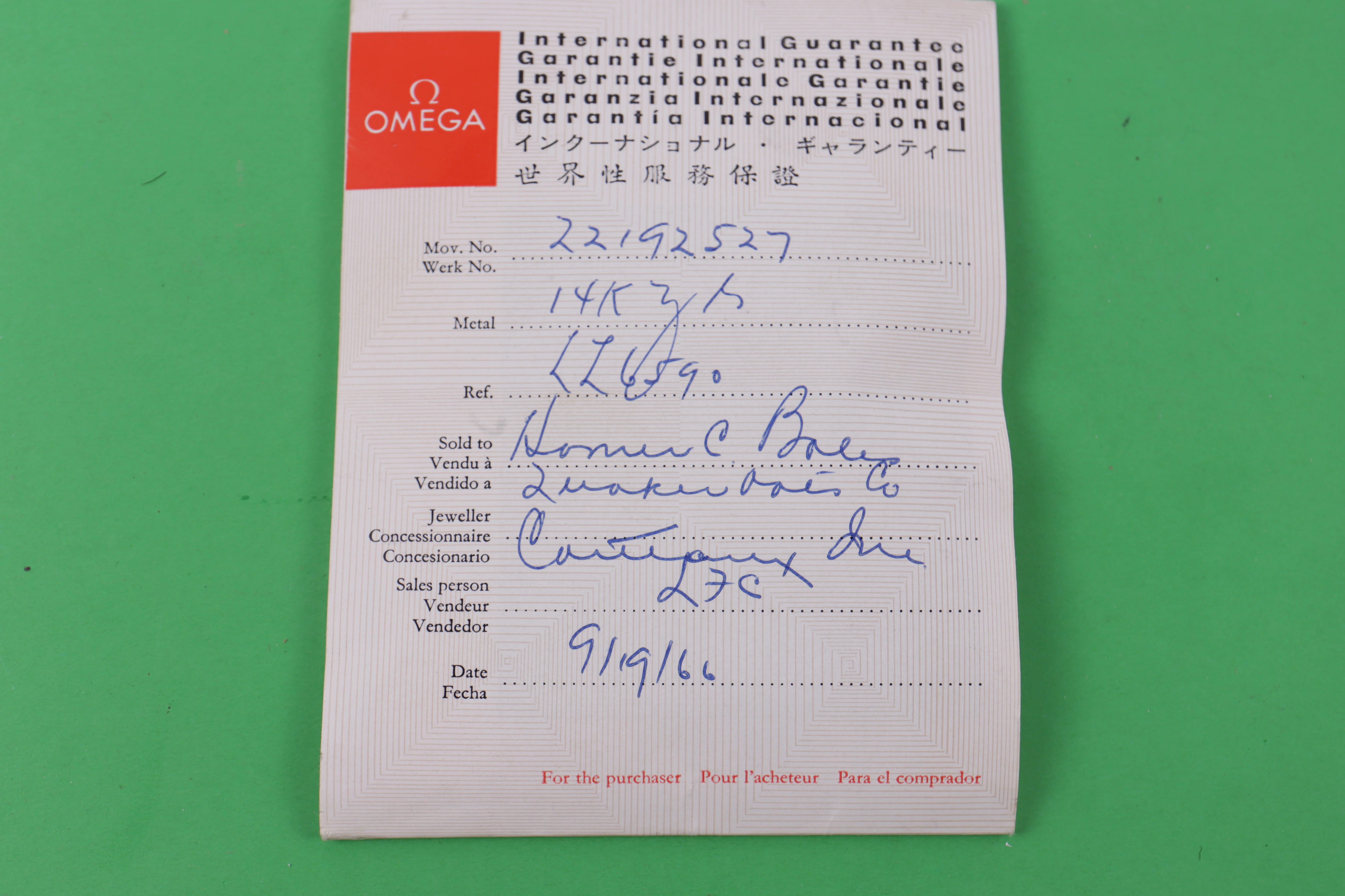 Serial: 22M range, which places manufacture date circa 1965. Sold in September 1966 based on Guarantee.