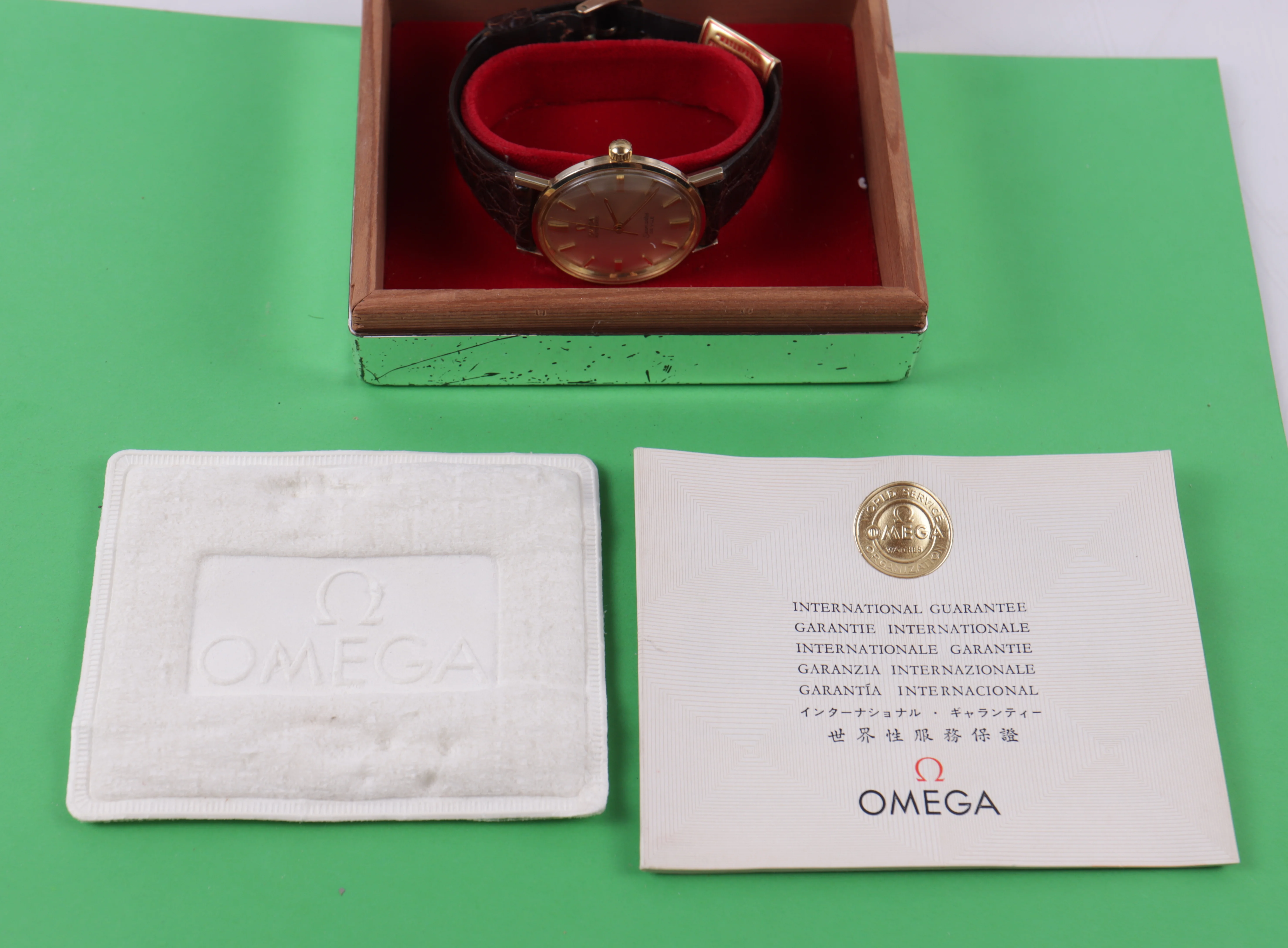 Strap: Looks to be original alligator strap with Omega marked strap and buckle.
