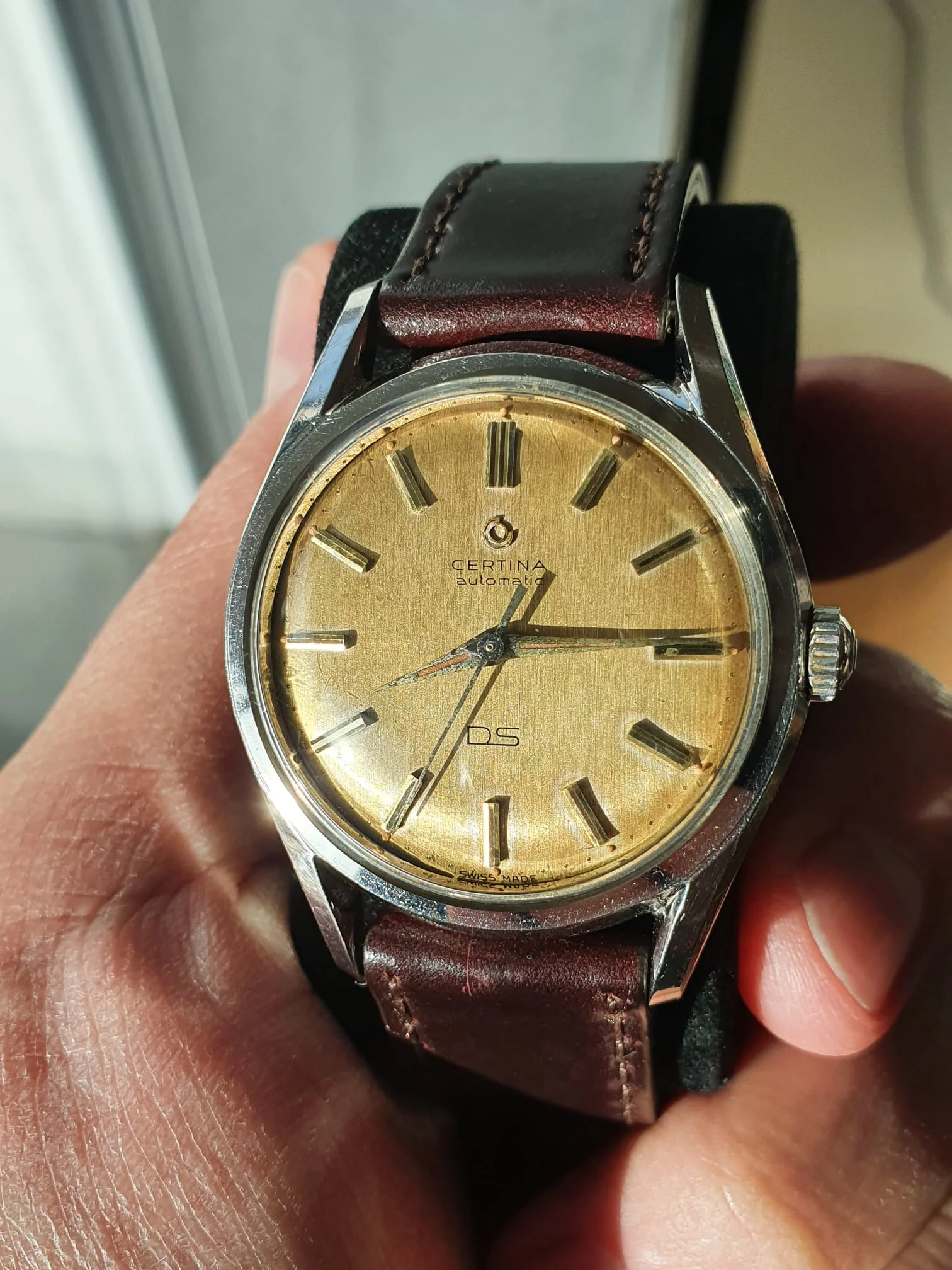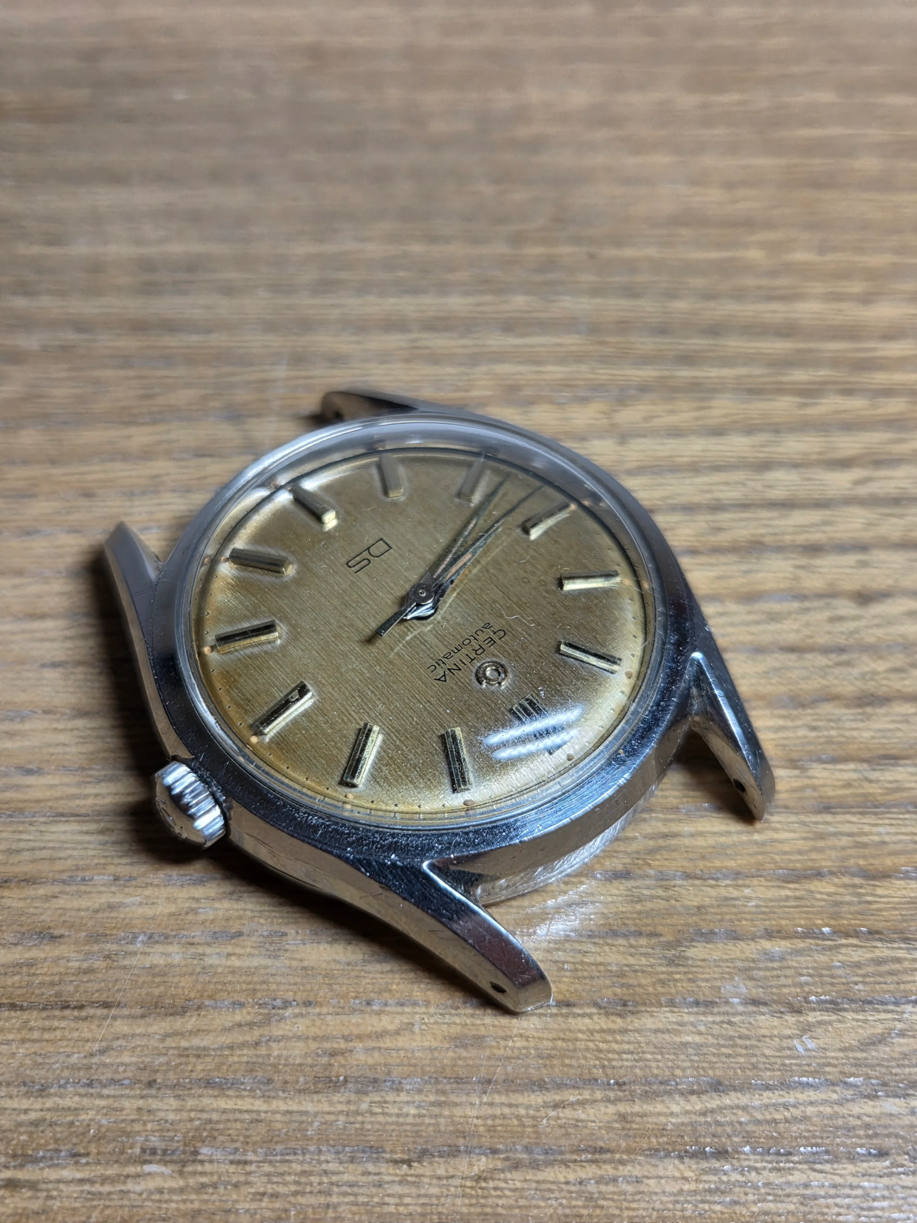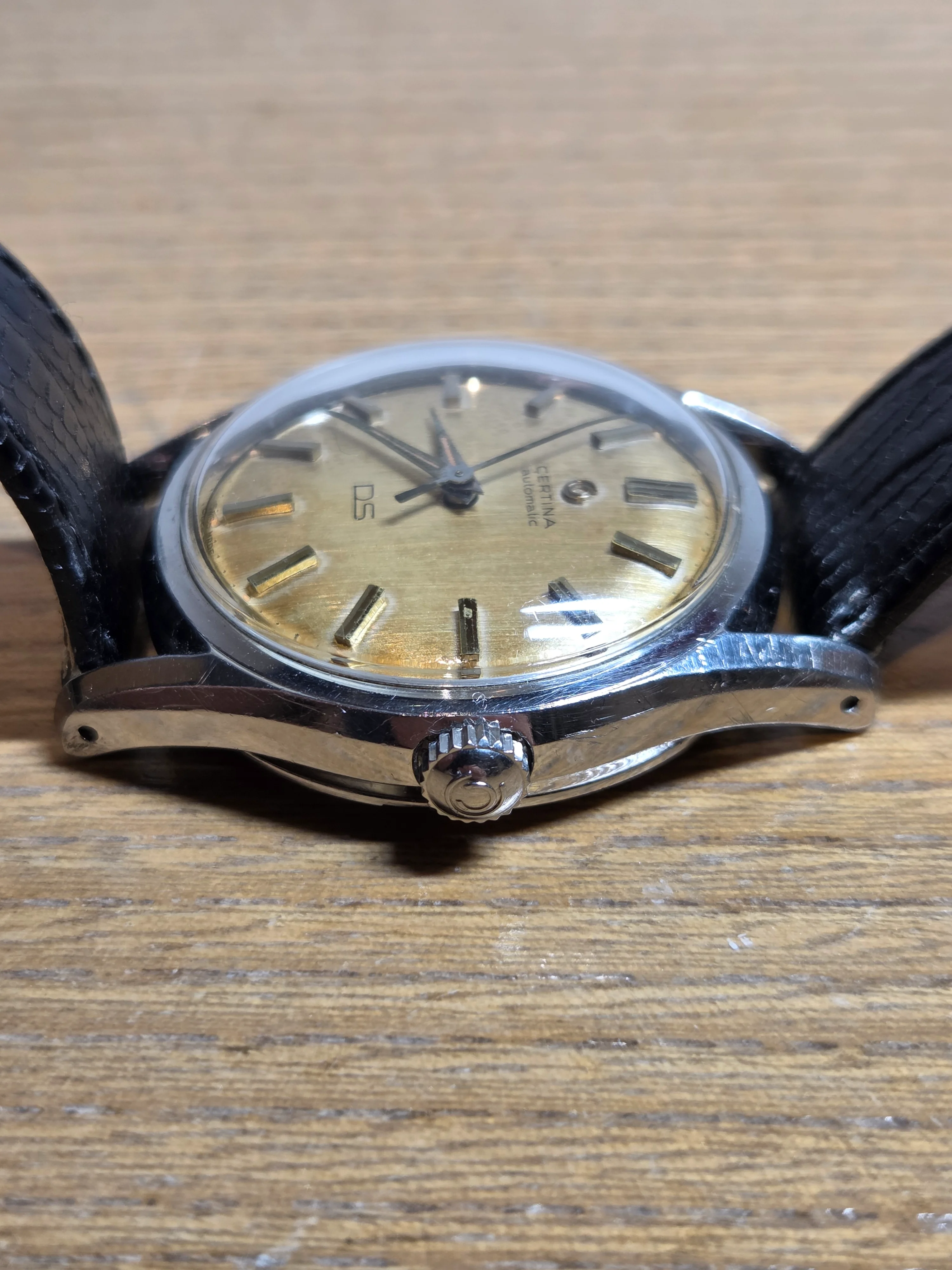For sale i offer this outstanding Certina DS Patent Pending. This is a very nice example with sharp case that one doesnt find often. The serial number is clearly visible which is usually a good sign. The crystal is original. The teeth of the crown are super sharp. The dial still has all the radium lume dots intact.