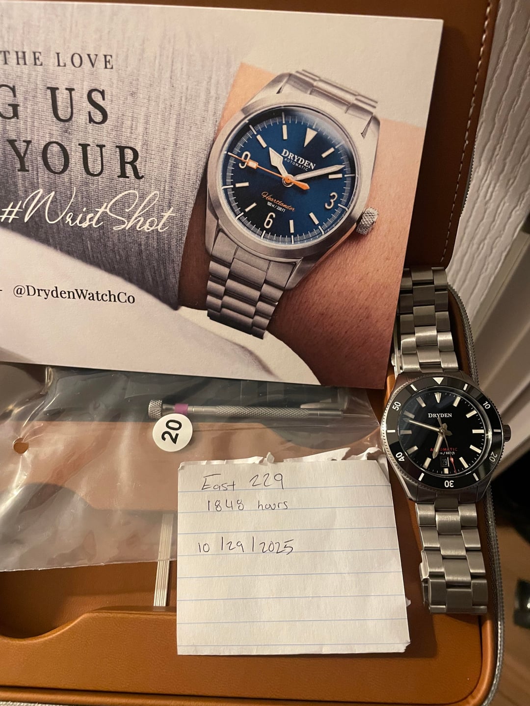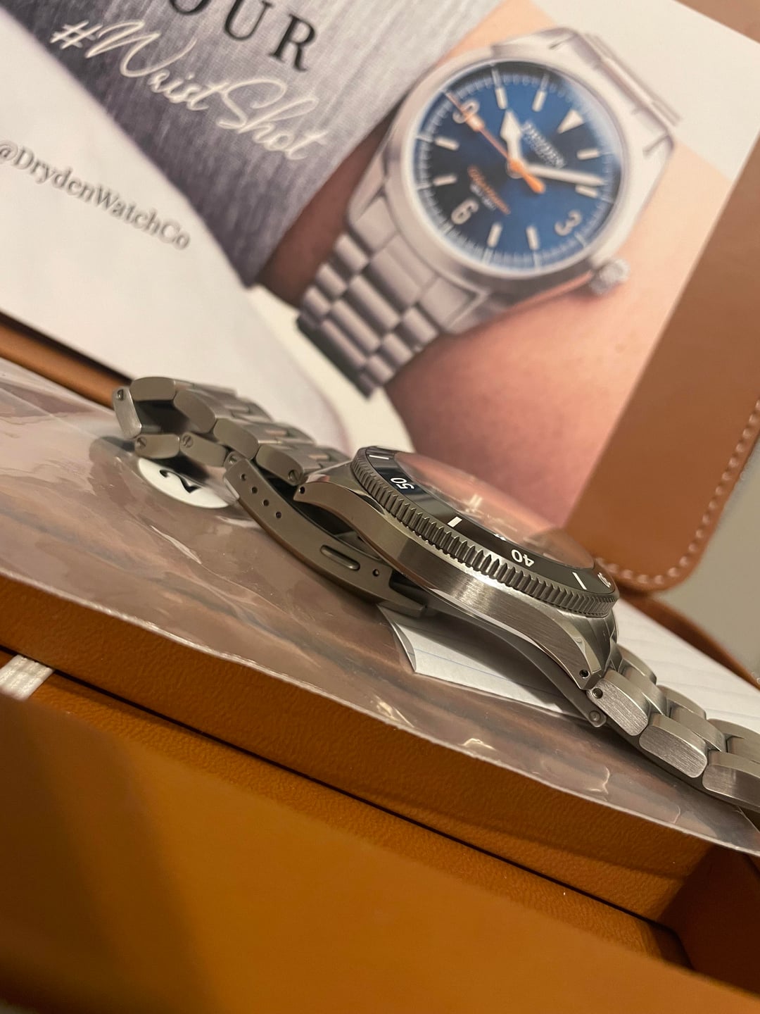 For sale is my Dryden Pathfinder. The watch is like brand new, only a few months old and hardly ever worn. It’s a great piece, but I’m selling all my watches and keeping my 1 with all the sentimental value. It’s a 41 mm case, 20mm lug width. 200m WR and only 11.8mm thick, with a sapphire crystal. Miyota automatic movement is very accurate. Not a single nick, blemish, etc. Asking $450 but feel free to make an offer. I’m in the AWWC, Sketchy Boys, and Sangin BST on Facebook where I’ve made multiple sells and can provide references, just none here on Reddit.