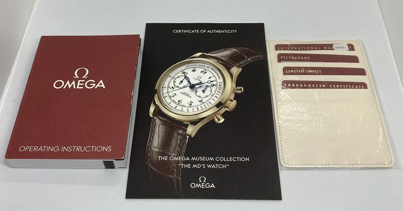 For sale is a "like new" condition Omega Reference 516.53.39.50.09.001. I've had the watch for two years and purchased it new. Worn sparingly with care. Running perfectly, all functions work as they should, keeps excellent time. Package is complete with outer cardboard box, inner box, special edition box, cards and all the paperwork, stickers and protective film. I'm selling to purchase something else. This is a fine dress watch crafted in 18k solid yellow gold and has a wonderful presence on the wrist with the white laquer dial.