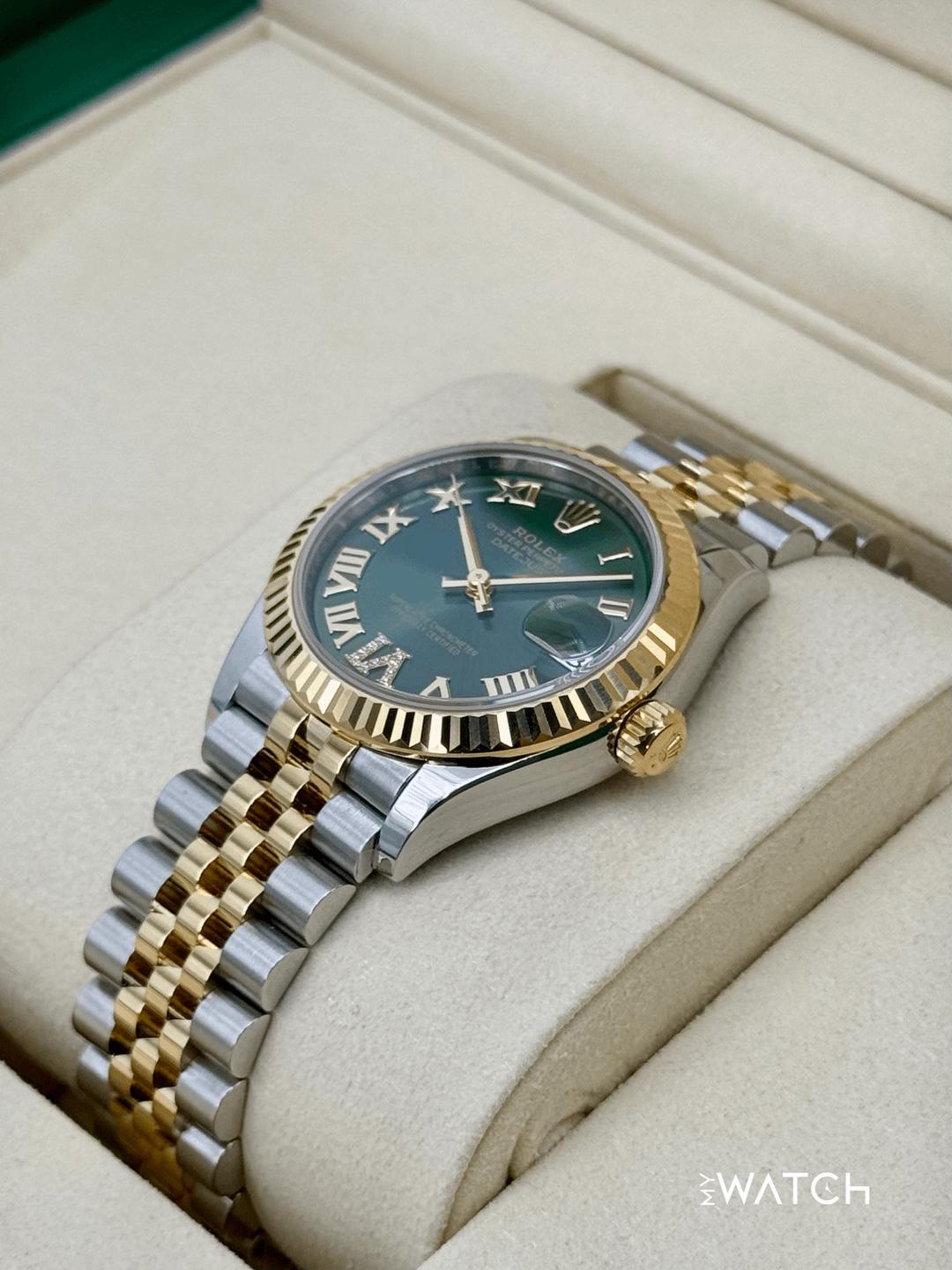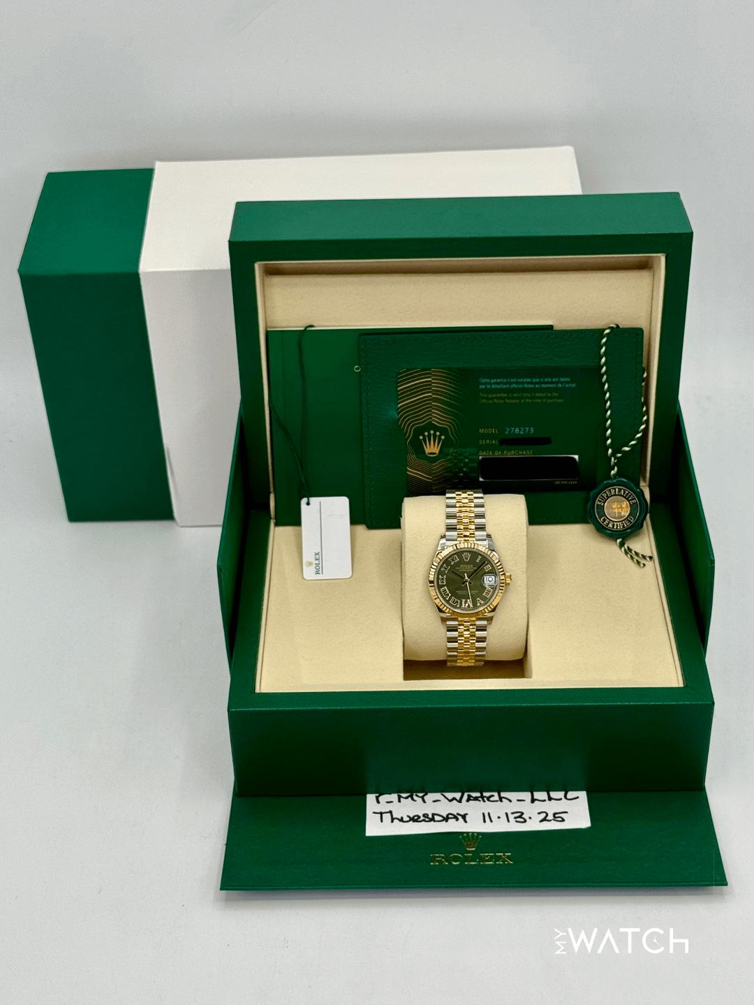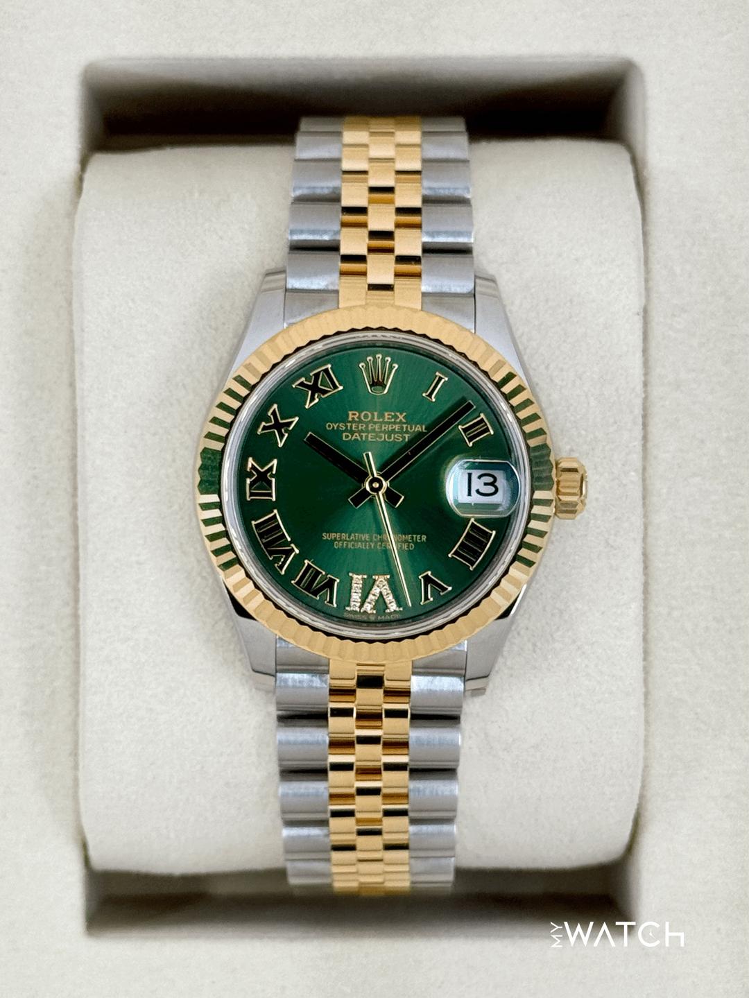 🔵**NEW 2025 Rolex Datejust 31mm 278273 Two-Tone Oystersteel and Yellow Gold Jubilee Bracelet and Green Dial** 🔵**TRADE or SELL us your luxury watch, all brands considered. Message me details.** **Includes the following:** **✔️BRAND NEW 2025 UPDATED ROLEX BOX (Double Boxed)** **✔️Box and Papers - Yes** **✔️Warranty card dated 2025** **✔️5 year manufacturer warranty** **✔️VI Diamond Dial** **✔️Manual and Warranty booklets** **✔️Green and White Hang Tags included** **✔️Size: 7.0inch wrist (Full Links)** **✔️Watch is BRAND NEW/UNWORN** **✔️**[**Trades**](https://mywatchllc.com/pages/sell-rolex-watch) **welcome** Business Name: **My Watch LLC** LOCATION: Oak Park, Michigan ✔️[MyWatchLLC.com](http://mywatchllc.com/) for current inventory ✔️Google Business Listing [https://g.co/kgs/Cmd6FPW](https://g.co/kgs/Cmd6FPW) ✔️Business Hours M-F 9-6 ✔️Facetime/Video chat/calls welcome to view the watch interested. ✔️Contact: 248-422-0909 via text or call for quickest response. 🟢TERMS: Visit [MyWatchLLC.Com](http://mywatchllc.com/) for payments accepted 🟢REFERENCES/REVIEWS: We are well reviewed on all platforms from google, trust pilot, rolexforums, additionally we have 300+ reference in multiple FaceBook watch groups, reference checks welcome. 🟢SHIPPING: If you are not local, we offer Fully Insured FedEx overnight shipping in the USA for a fee. International shipping available.
