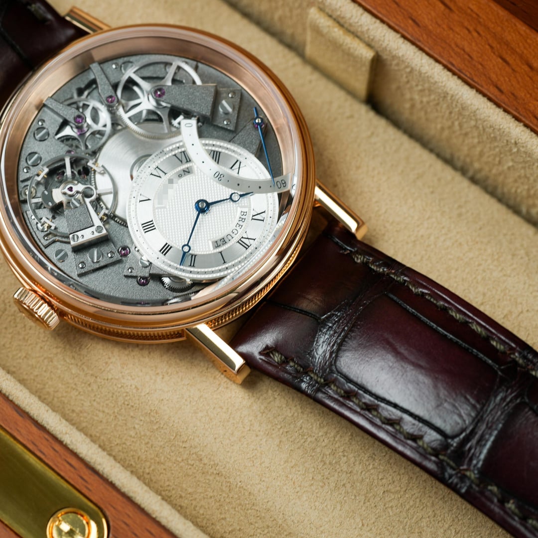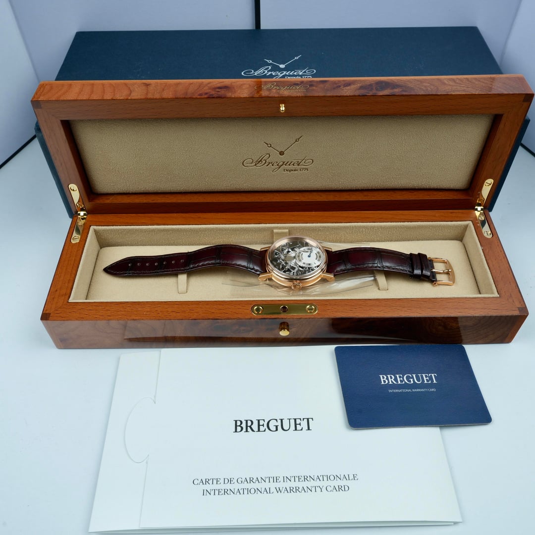 2025 Breguet Tradition Seconde Rétrograde 7097BR/G1/9WU Timestamp: [https://imgur.com/xVkj7Un](https://imgur.com/xVkj7Un) A stunning blend of Breguet’s heritage and innovation, the Tradition 7097 features an 18K rose gold 40mm case, fluted sides, and a sapphire display back. Its open-worked dial showcases the self-winding caliber 505SR1, with silicon components for precision and anti-magnetism. The standout retrograde seconds display arcs across 10 o’clock, balanced by the off-center silvered guilloché dial at 12. Paired with a brown alligator strap, this piece embodies both classical elegance and modern horological artistry. Comes with Inner/Outer box and Warranty card. Watch is in mint condition. Please look over my pictures closely as I like to properly represent the watch you will be receiving. **Offered at $23,999 shipped in US or OBO.** Payments accepted: Wire or Direct Bank Transfer (Bank of America). Shipping is always FedEx/UPS overnight, fully insured. I am an avid enthusiast and collector and am not affiliated with any watch brand I post. **Always open to trades or purchases! Looking for Audemars Piguet, Rolex, Patek Philippe, FP Journe, Vacheron Constantin, and other luxury brands.** I guarantee every watch I sell to be 100% authentic. Follow me on IG: JJ\_Timepiece\_Co Call or text (941) 800-3931