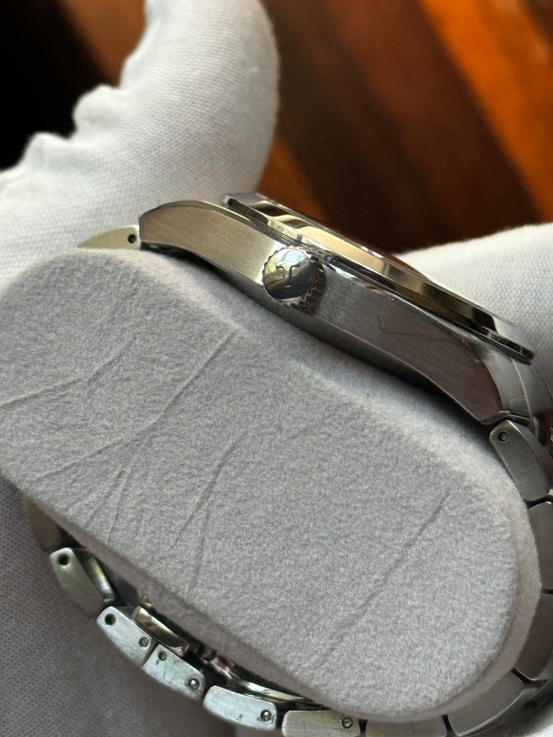 Greetings all, Recently obtained my grail watch so I am looking to downsize on my collection including this Tissot Gentleman I purchased 3 years ago. It shows signs of honest wear with a couple deeper nicks on the bracelet. The watch keeps very, very accurate time, and the green dial will go from a bright juvenile sunburst, to a matte “British racing green”, to black depending on the lighting. The indices’ finishing catch light very nicely for this price range, only defeated at the Grand Seiko range imo. I have all spare links on standby, the watch is currently sized to a 6.5-6.75 inch wrist. Asking for $475, due to the OEM Tissot leather strap this watch will come with along with the steel bracelet. That includes free USPS priority mail box shipping. I can do Zelle, Crypto, Cash App, PayPal, Venmo, in order of convenience. Ideally CONUS. Thank you.