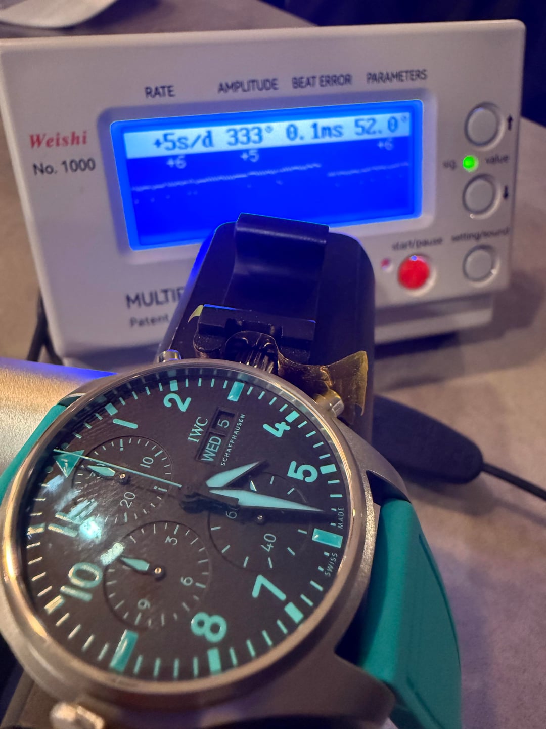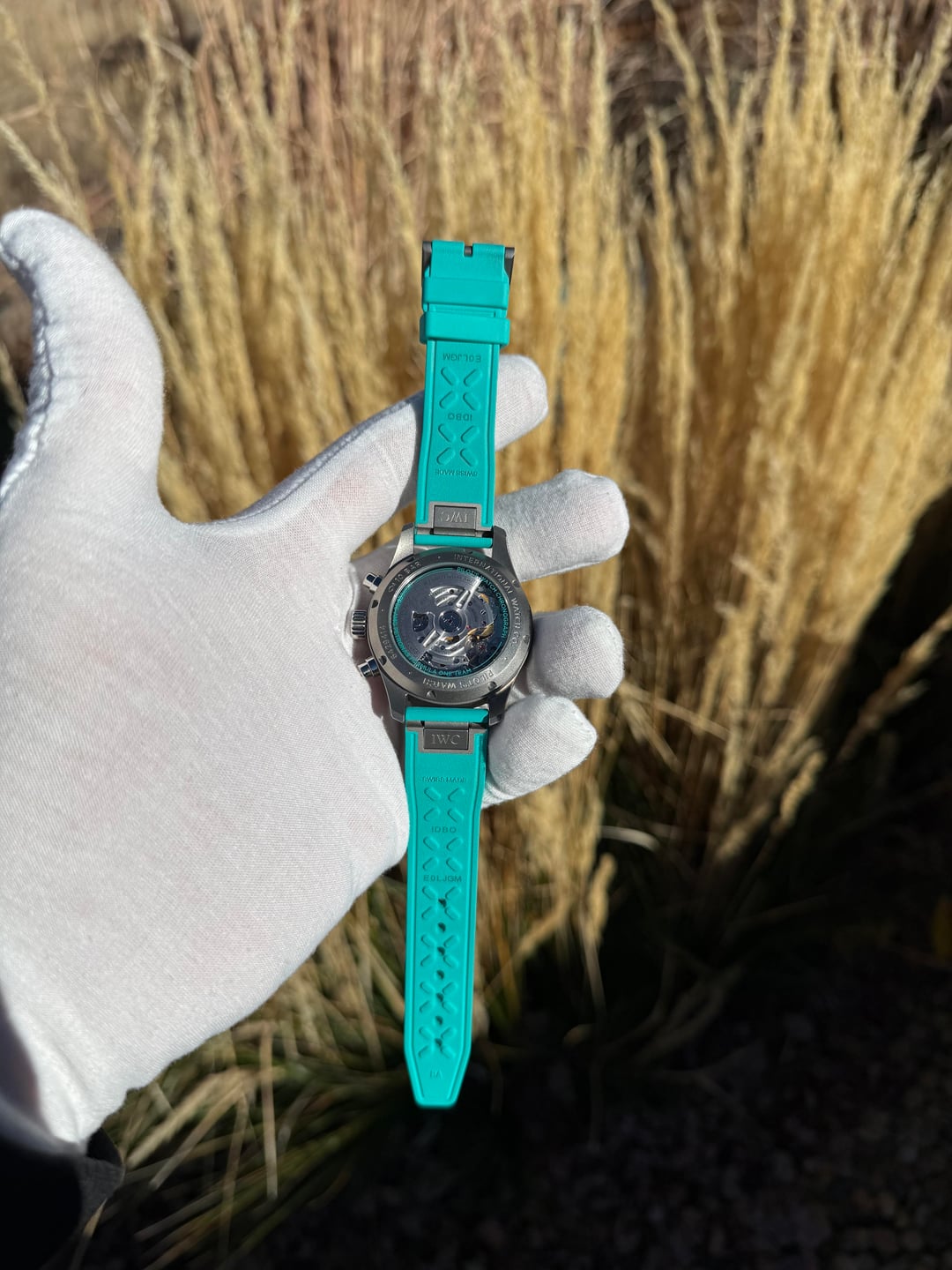 Up for sale is the IWC Pilot's Watch Chronograph 41 Edition "Mercedes-AMG PETRONAS Formula One Team" Crafted from lightweight grade 5 titanium, this 41 mm chronograph features a matte black dial highlighted by the signature Petronas green accents. Inside is IWC's in-house calibre 69385 automatic movement, offering a 46-hour power reserve and precise chronograph timing with day and date display. The design on this one offers a perfect combination of stealth with a pop of color. Equally suited for everyday wear or a day in the paddock at Monaco. Condition: This piece is in mint used condition. Thanks to the Grade 5 Titanium, there are no discernible markings on the case. The crystal and dial are flawless as well. The watch is keeping excellent time according to the timegraph machine. (See included picture) Contents: This will come as a complete set with inner/outer boxes, operating manuals, polishing cloth, black and green EasX-CHANGE straps, and warranty card dated 2023. Shipping: I will include complimentary FedEx, fully insured, shipping in the U.S. Price: $6,250 Payment: Wire or Zelle preferred, but can discuss other options with serious buyers. Located in the Denver metro area. Please let me know if you have any questions or would like any further photos. Also more than happy to hop on a FaceTime to show the watch to serious buyers. Thanks for looking. Cheers!