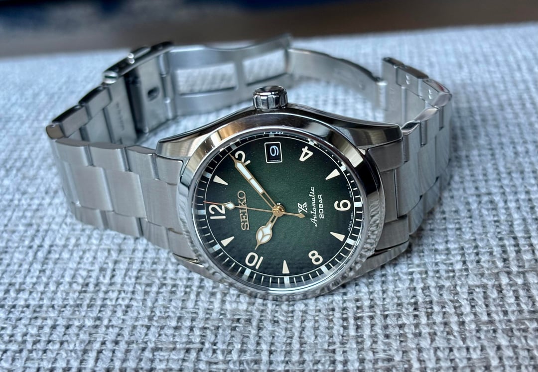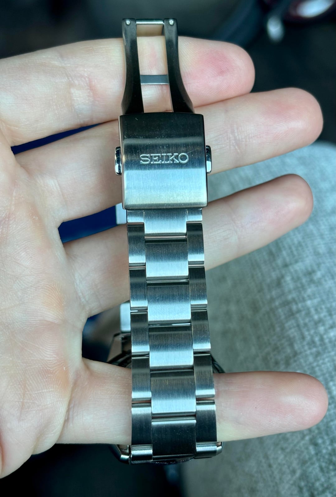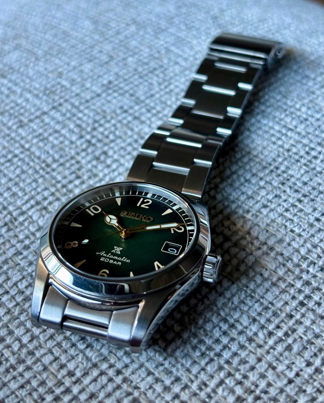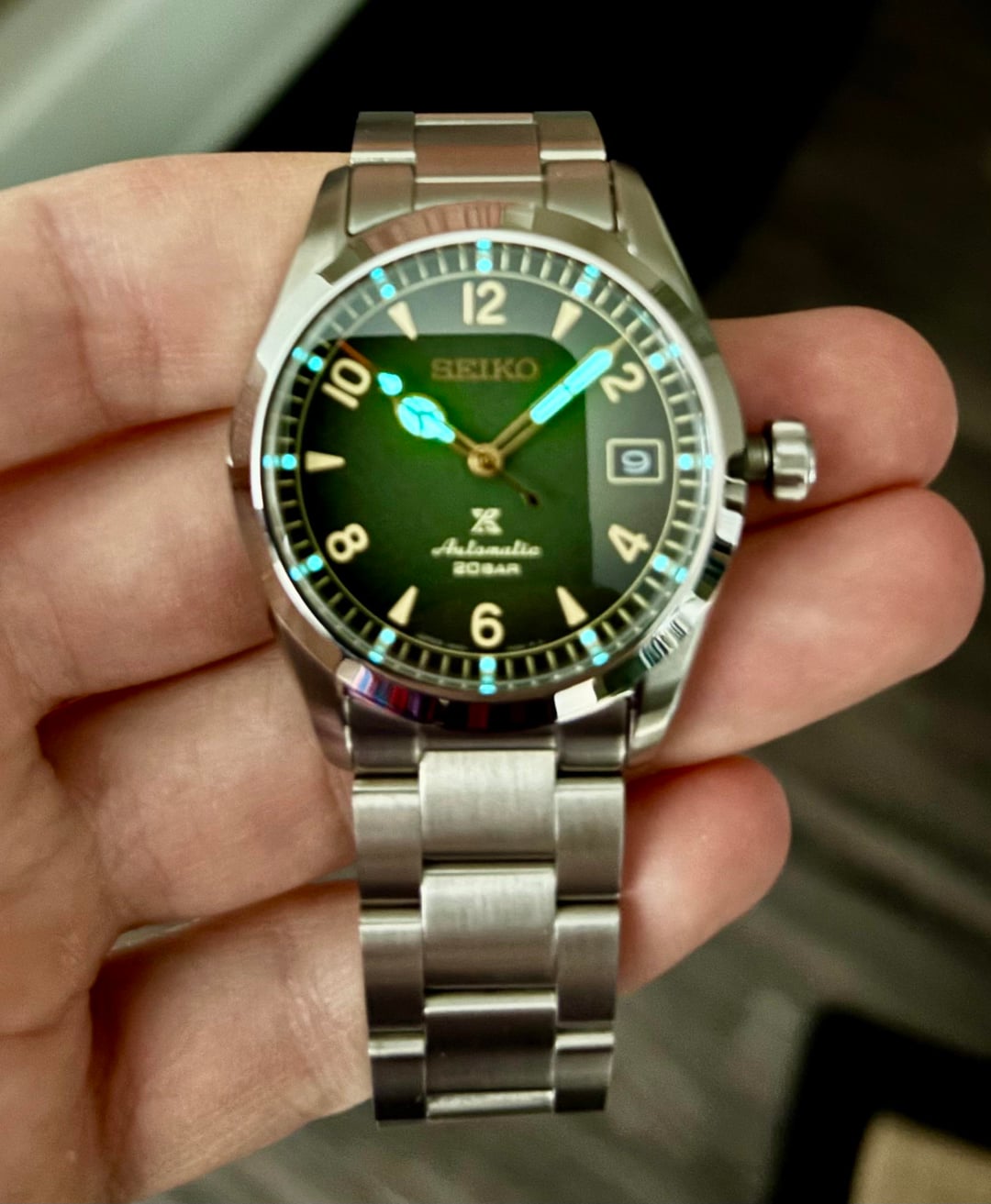I’m letting go of my Seiko baby Alpinist 38mm. I’m letting it go because it doesn’t get wrist time and I want to consolidate my collection. Specs are as follows: Diameter: 38mm Thickness: 12.9mm Lug length: 46mm Lug width: 20mm Movement: automatic 6R35 with 70hr power reserve. Crystal: domed sapphire with inner anti-reflective coating. Water resistance: 200m Screw down crown Price: $450 shipped to you in CONUS. Payment: PayPal FF. Not looking for trades at this time.
