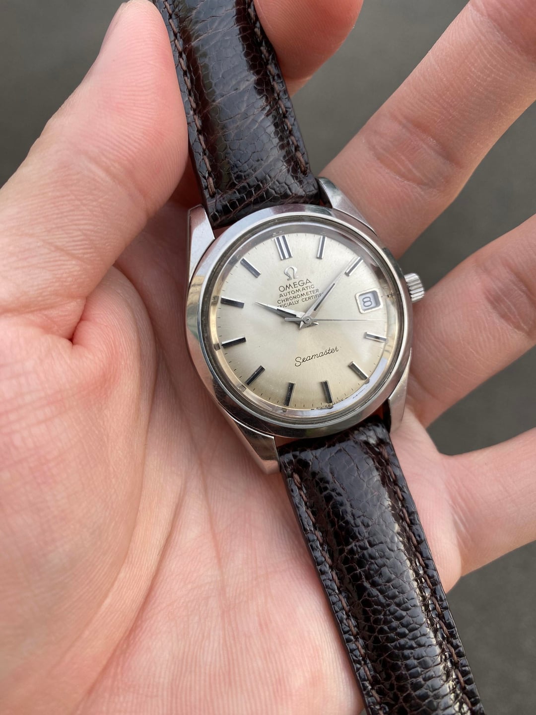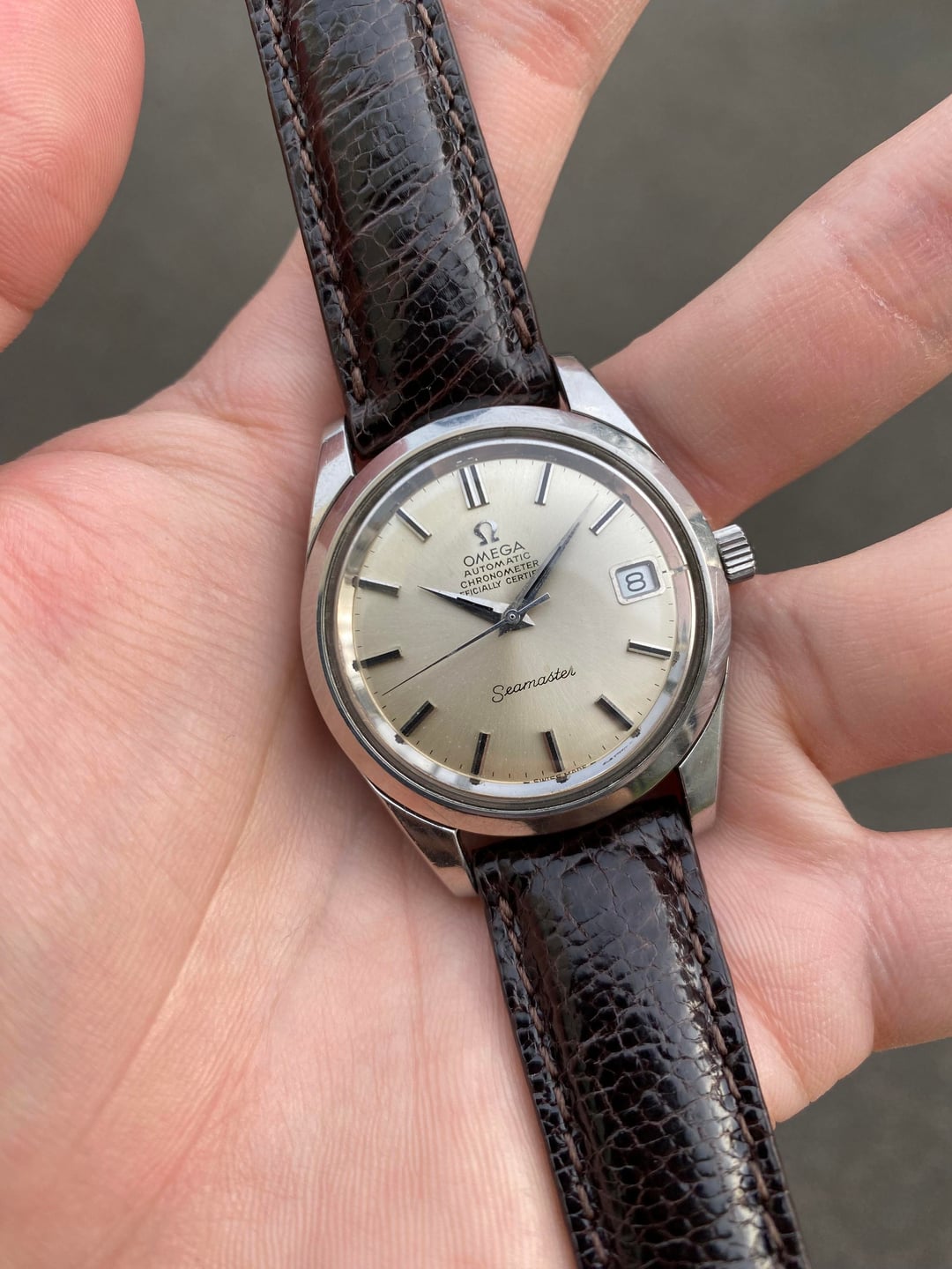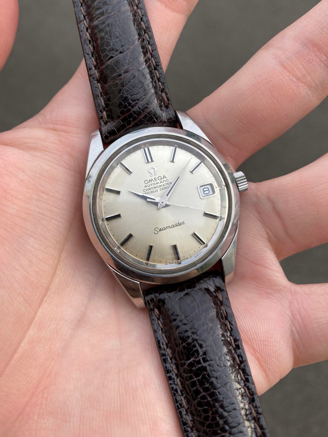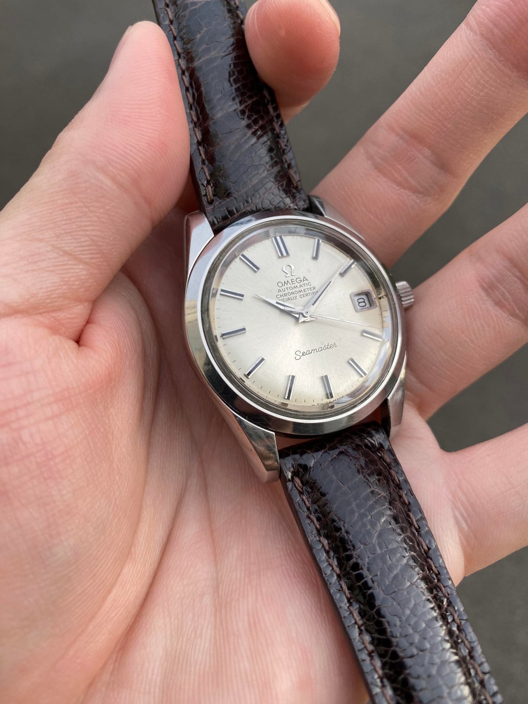 Hi everyone! I’m offering this beautiful Omega Seamaster bearing the reference 168.024, from 1969. This super classic and timeless reference holds the well known chronometer-rated caliber 564 automatic movement that is more commonly found in the Constellation line. It was freshly serviced locally in Singapore in November for about $120, and runs breezily with a crisp wind and great timekeeping. It has a 6 months warranty on the work. This is a really solid timepiece that straddles easily between the realms of casual and dressy, and will always remain relevant thanks to its very timeless case design and excellent all-round construction. The white sunburst dial has also developed a really subtle champagne tone which is lovely, and I have paired it with a dark brown leather strap to match. Its case is also unpolished, with the Seamaster logo on the case back untarnished and sharp. It is a real beauty measuring in at a very comfortable and proportionate 35mm across (excluding the original signed crown), and is a pure joy on the wrist! For this freshly serviced piece, I’m looking for $1250 + shipping (usually $50) from Singapore via reliable Fedex to wherever you may be. I accept payment through Wise (preferred), Revolut, or bank wire. Please let me know if you have any questions. Full album with timestamp: [https://imgur.com/a/0lEUupG](https://imgur.com/a/0lEUupG) Thank you! David