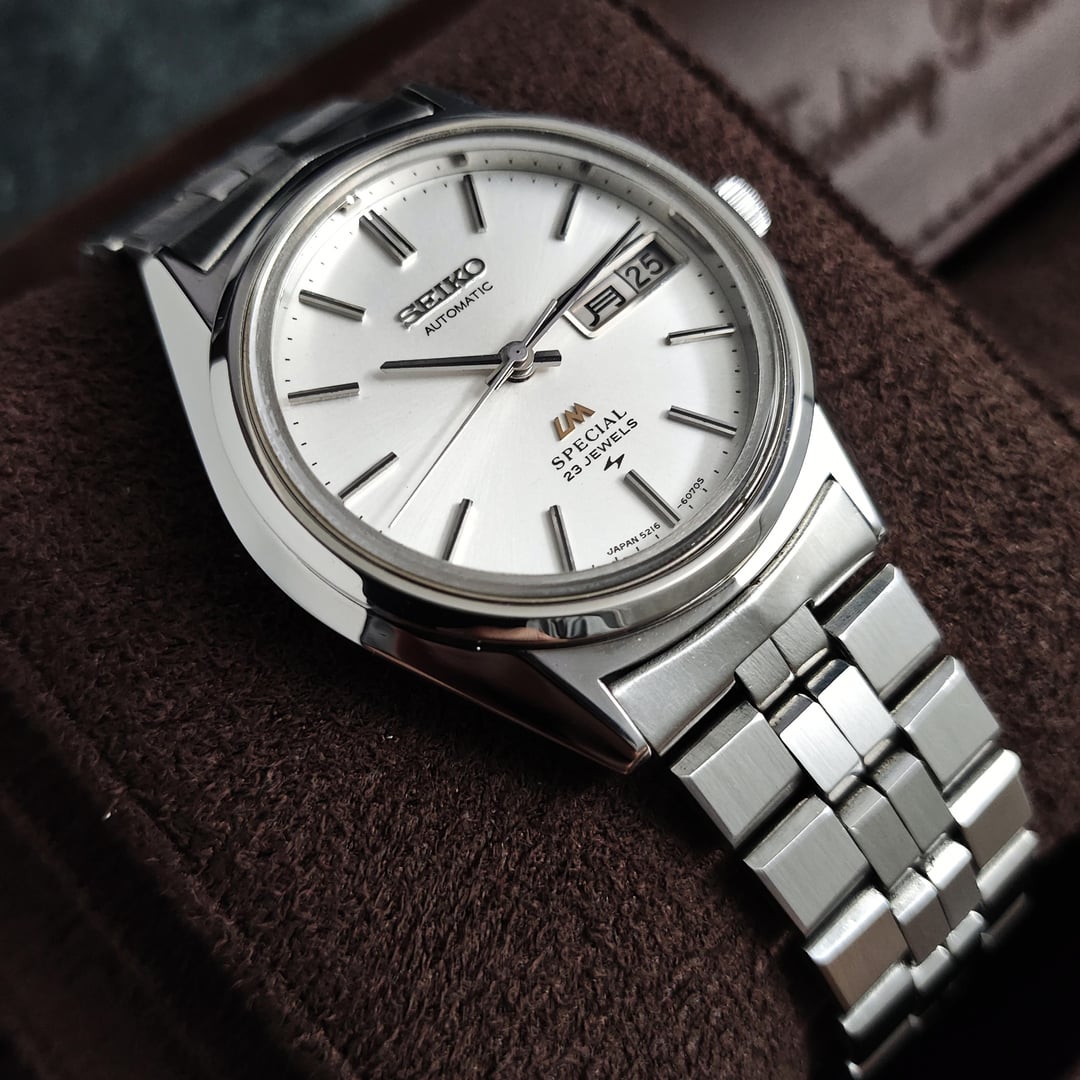 Up for sale is a vintage Seiko 1973 Lord Matic (LM) Special 5216-6050 | Hi-Beat 28800 BPH - BMBY: September, 1973 - Ref: 5216-6050 - Movement: Automatic - Kanji/English - Case Size: 35mm w/o Crown - Lug to Lug: 41mm - Bracelet: Up to 8 inch wrist (I think this one has complete links) - Pristine Dial - All Original - Professionally Polished - Date of serviced: November 6, 2025 (1 month movement warranty upon watch arrival) - Working quickset - With Manual Winding - Hacking Note: For 52xx movements, it's normal to have a stiff feeling when changing the date as the movement is being wound at the same time. 💰 Price: $280 (Shipping Included) 🌍 Accepting Paypal F&F/G&S(+4.4%) or Wise 📦 Inclusions: - Watch - Presentation Box 📍 Location: Philippines 🇵🇭