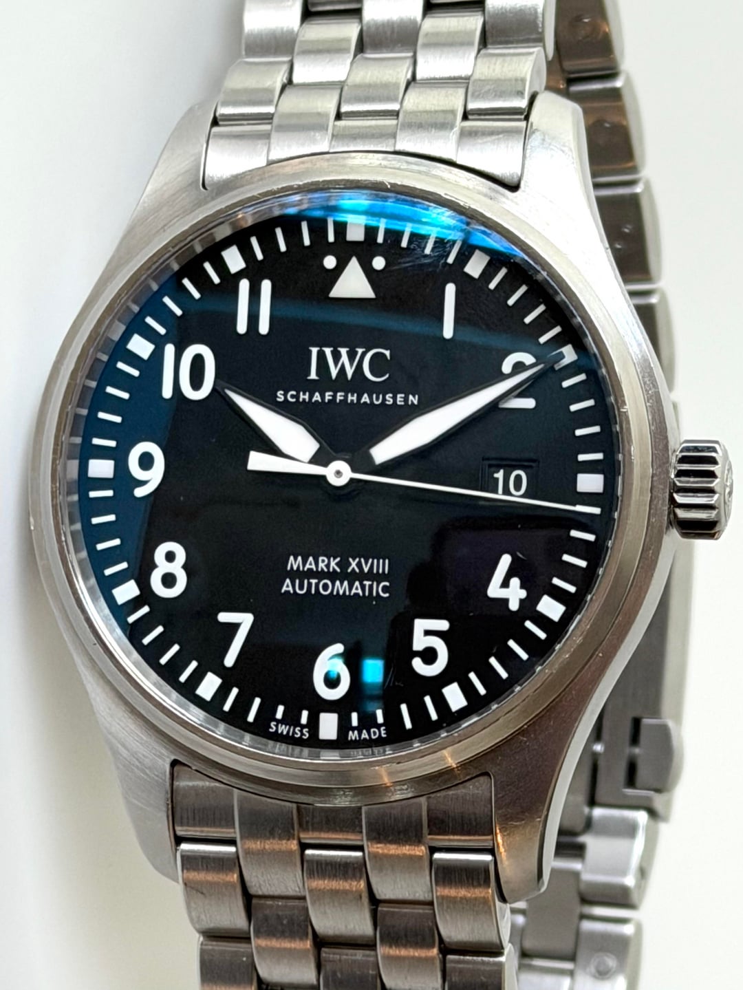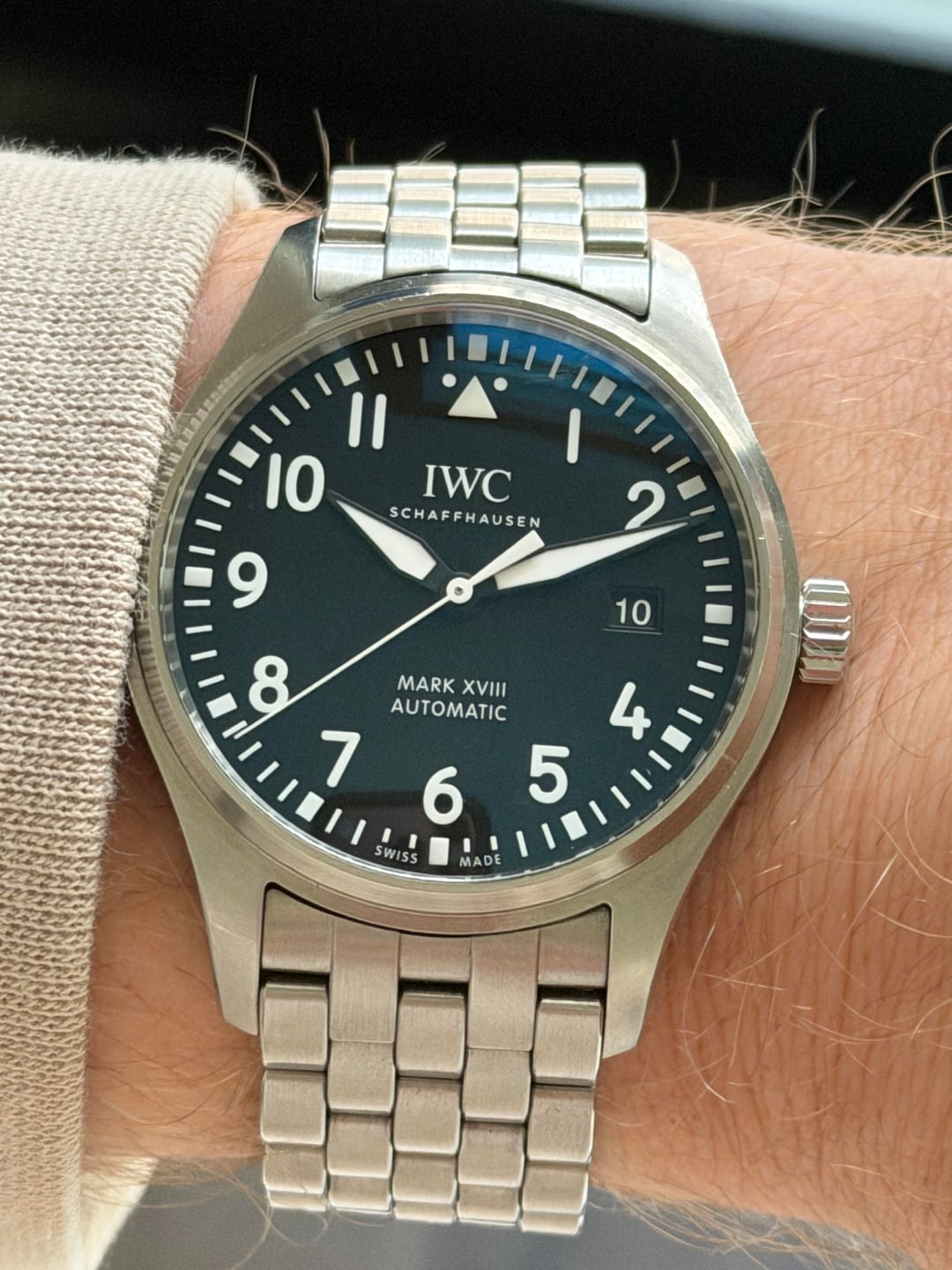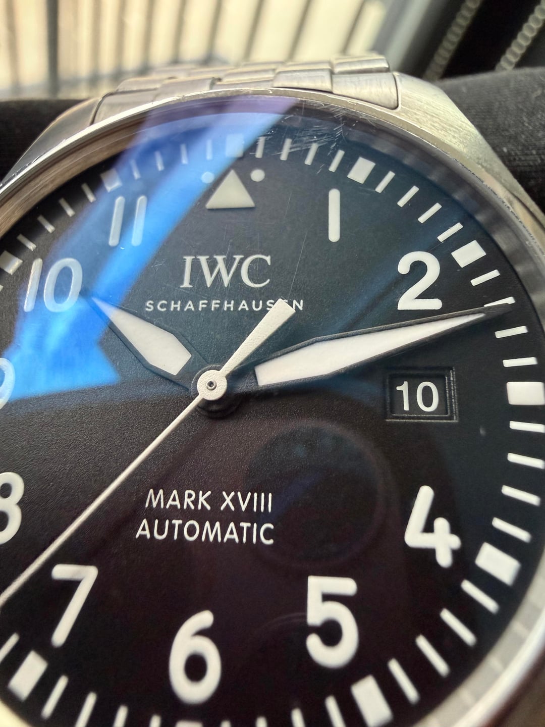 IWC Mark XVIII IW327011. 7.5” bracelet. 40mm. Has minor scratches on AR coating. **$2899** / Zelle, Venmo, or WU accepted. Timestamp: https://imgur.com/a/u10WALU I have tons of references on multiple platforms including WatchExchange. I am more than happy to show these.