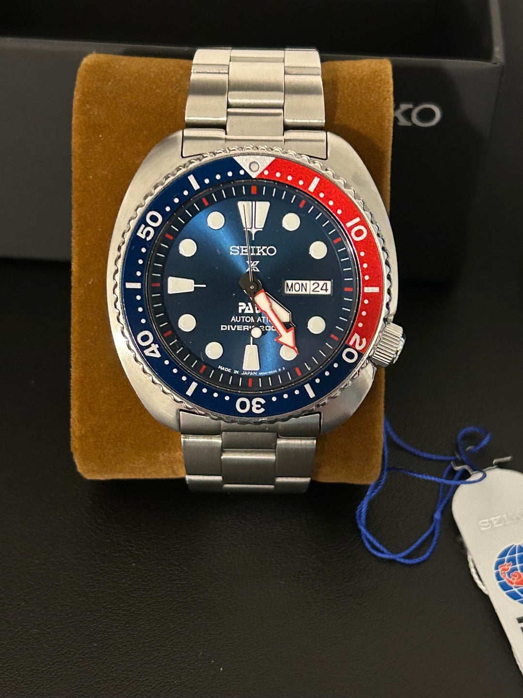 Hi Watchex - $370 with UPS ground shipping included. No trades please only looking to sell. I will take PayPal G&S with the buyer covering the fee or Zelle. Will also entertain PayPal F&F or Venmo with a positive transaction history. Seiko Turtle Pepsi Padi. Ref# SRPE99. With uncle senator bracelet. Comes with full kit with unstamped warranty card. Worn lightly, some small micro/hairlines on the polished sides of the case, if anything to note. Comes with original Seiko and uncle senator bracelets. I’d be happy to send additional pictures, video, or FaceTime with the watches. Let me know if you have any questions. *Edited*
