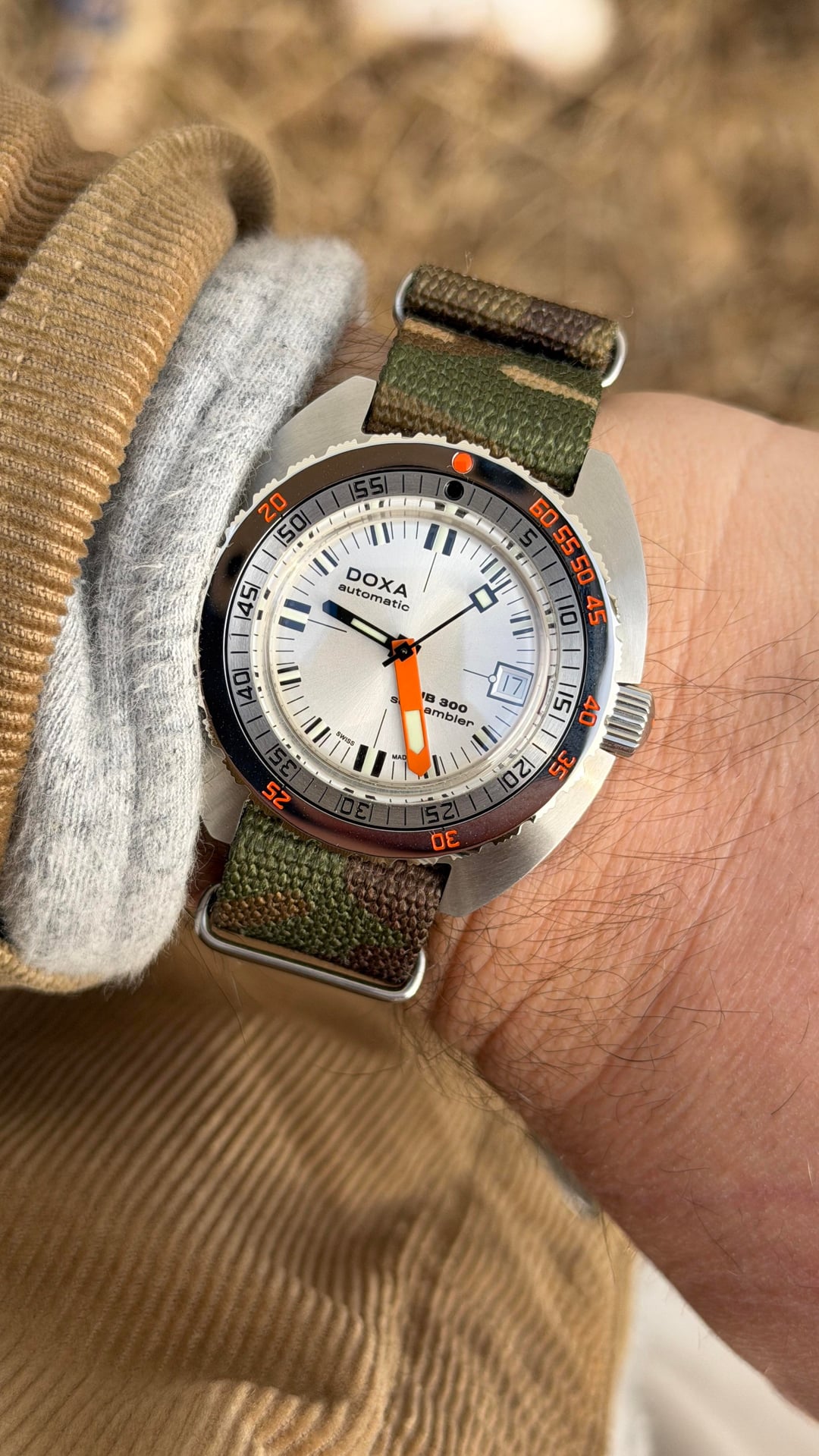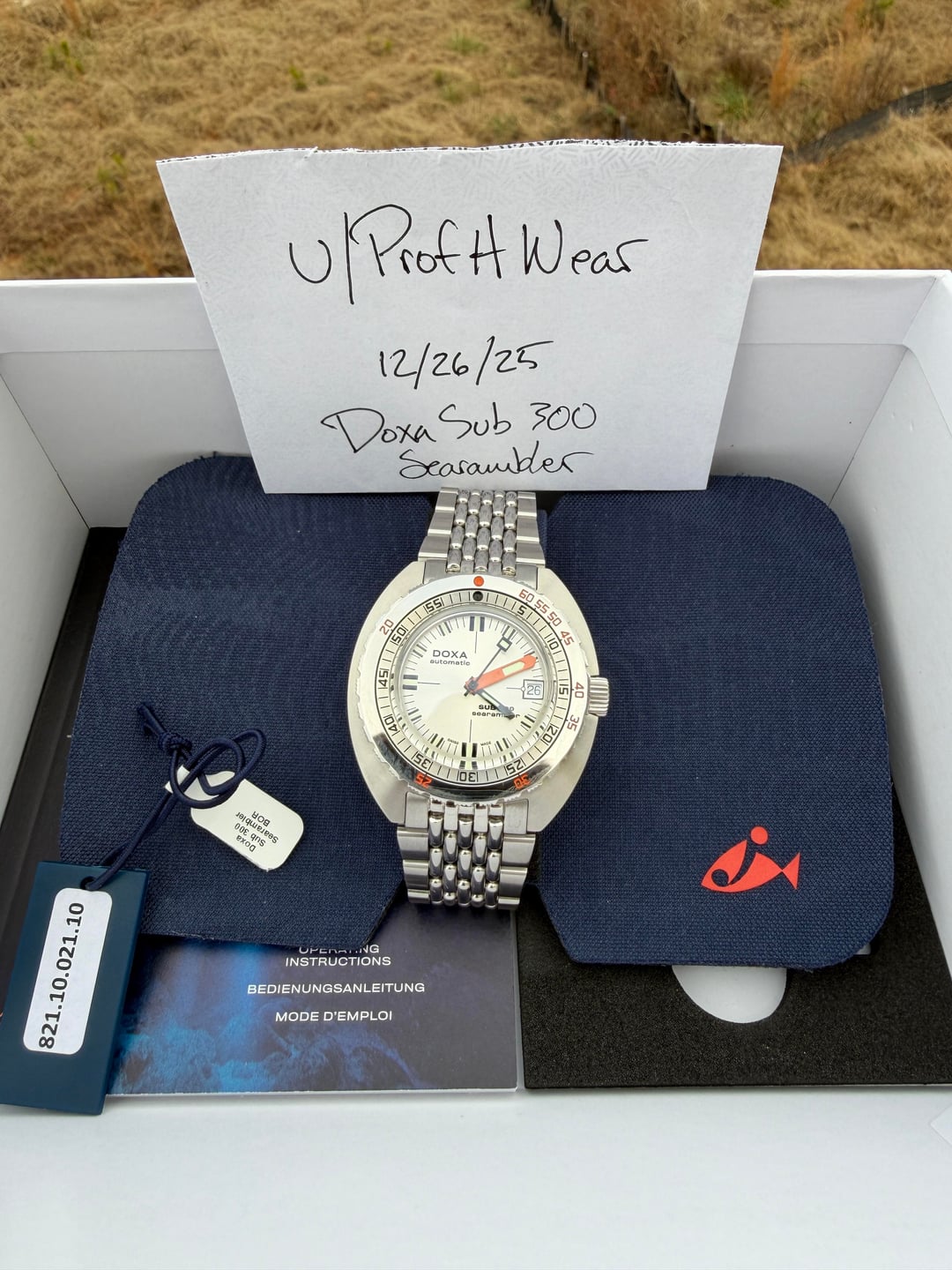 For sale: Doxa Sub 300 Searambler. Catch and release here. AD purchased from Belmont Watches on December 11. Terrific watch and killer execution as always by Doxa. Wears like a dream, especially on a camo NATO strap. Selling because something else caught my eye, we all know how it goes. Put that XMas money to good use! Included: Full kit with double box, papers, and hang tag. Price: $2100 or best reasonable offer. Low ballers will be politely ignored. Since it’s only two weeks old it’s priced in between a new AD purchased Sub 300 and a pre owned one typically found on the forums. No trades please. Price includes shipping with insurance within the CONUS. Payment methods accepted include Venmo/PayPal/Zelle Please don’t hesitate to reach out to me for any questions you may have. Plenty of confirmed transactions.