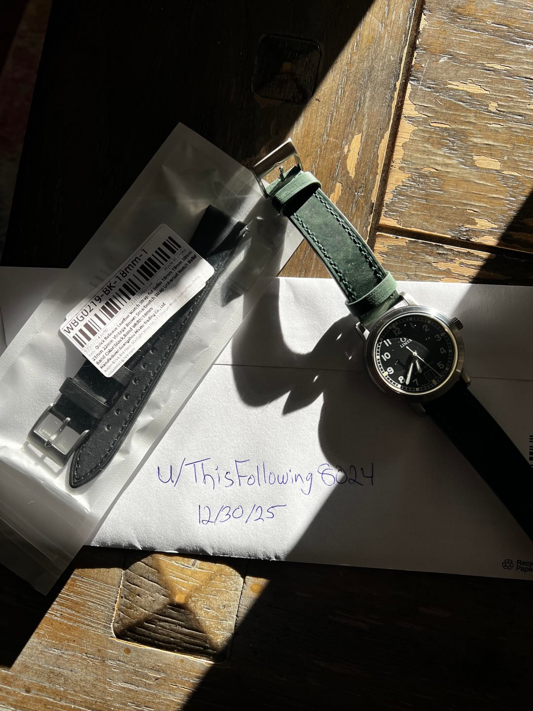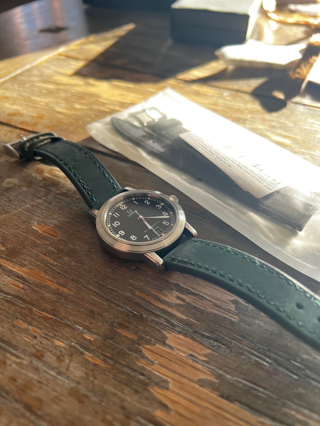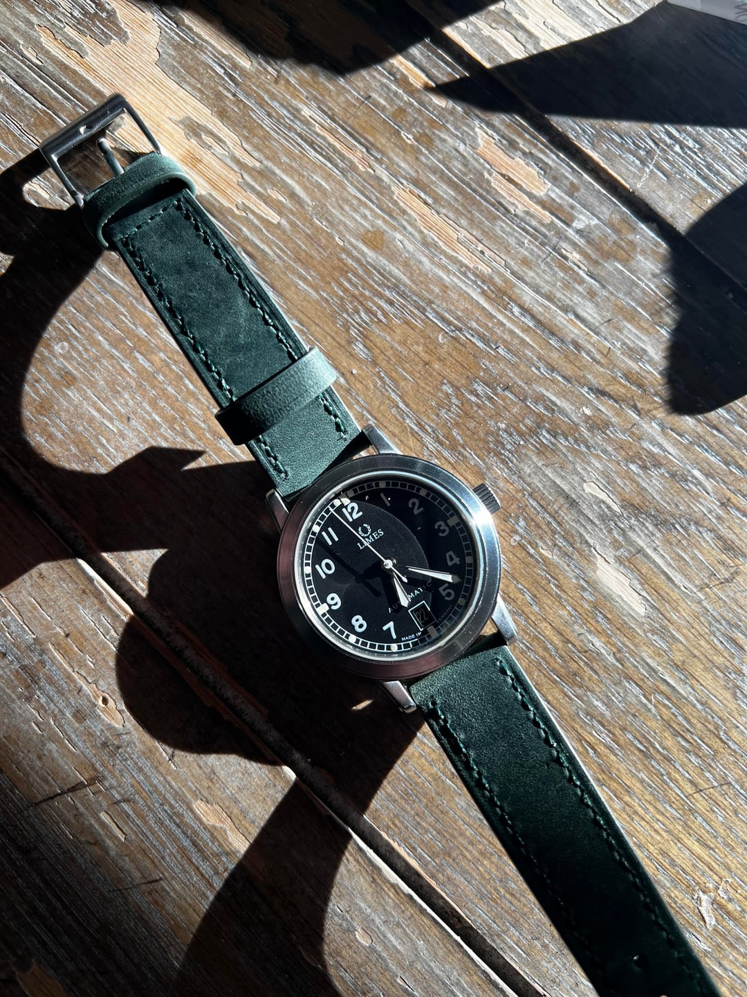 Up for sale is my Limes Principio 38mm, a beautifully built Made in Germany piece with a clean, legible dial and a reliable Swiss automatic movement visible through the display caseback. Super wearable size, great proportions, and classic tool-watch charm. Watch is gently used with normal wear from light use. Everything runs well and functions as it should. Includes: • Watch on green leather strap • Additional brand-new black strap (unopened) Price: $405 — slightly negotiable (before shipping) Payment: PayPal F&F preferred; PayPal G&S accepted if buyer covers fees; Venmo also accepted Shipping: Additional — USPS Priority Flat Rate (tracking included; insurance optional at buyer’s cost) Location: CONUS- North Carolina Trades: No trades Happy to send additional pictures or video if needed. Thanks for looking!