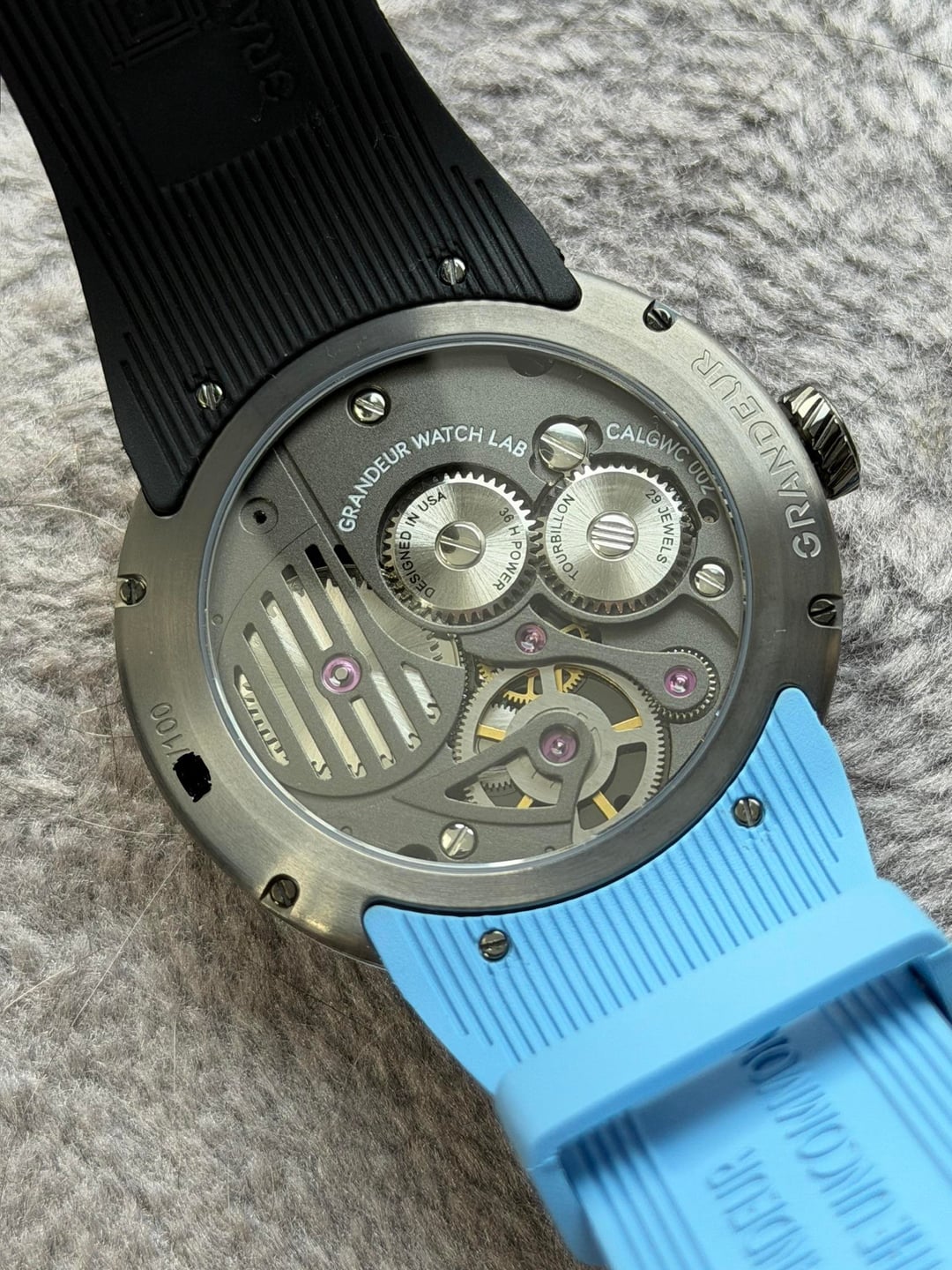 Hey folks Amazing fully lumed tourbillion from new microbrand Grandeur that made waves all across the internet in the last year! This was a Limited Edition 100 were made and is completely SOLD OUT. In excellent condition. Comes full kit. MSRP was $2100 (plus shipping and tariffs). I did adjust the strap with an extra hole to make it more comfortable for my wrist. You can visit the wesbite page for the watch here to get more info and see more pics: https://grandeur-usa.com/products/center-tourbillon *PRICE DROP** $2000 shipped conus PayPal F&F or Zelle. I have 60 positive transactions on watchexchange with good feedback so please read them. Also have an eBay store with hundreds of sales and hundreds of positive feedback so read them as well (offtherakcollectibles) Sale only, no trades. Ships from NYC so if you're in area can meet up locally. Please leave a comment here so I can view your transaction history and then message me if you're interested. Thank you! --------------------- from Grandeur: The world’s first lume tourbillon, redefining timekeeping with 12-hour continuous Swiss BGW9 luminescence. Crafted from ultra-light TC4 titanium, it features a Damascus aluminum dial, sapphire crystal with AR coating, and a sleek 42mm case with a thickness of just 5.6mm, complemented by a 5.7mm sapphire glass, making a total calculated form of 11.3mm. Powered by a modified and regulated version of the Hangzhou 37Z0E movement, meticulously enhanced by the Grandeur team, it operates at 28,800 bph with a 42-hour power reserve and 29 jewels for exceptional precision. The FKM rubber strap and TC4 titanium clasp provide durability and comfort for everyday wear.