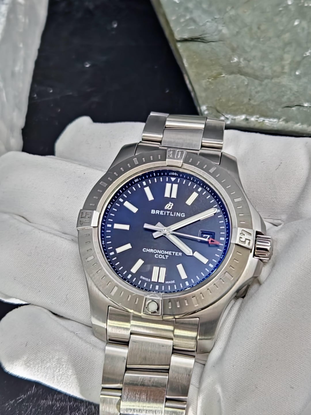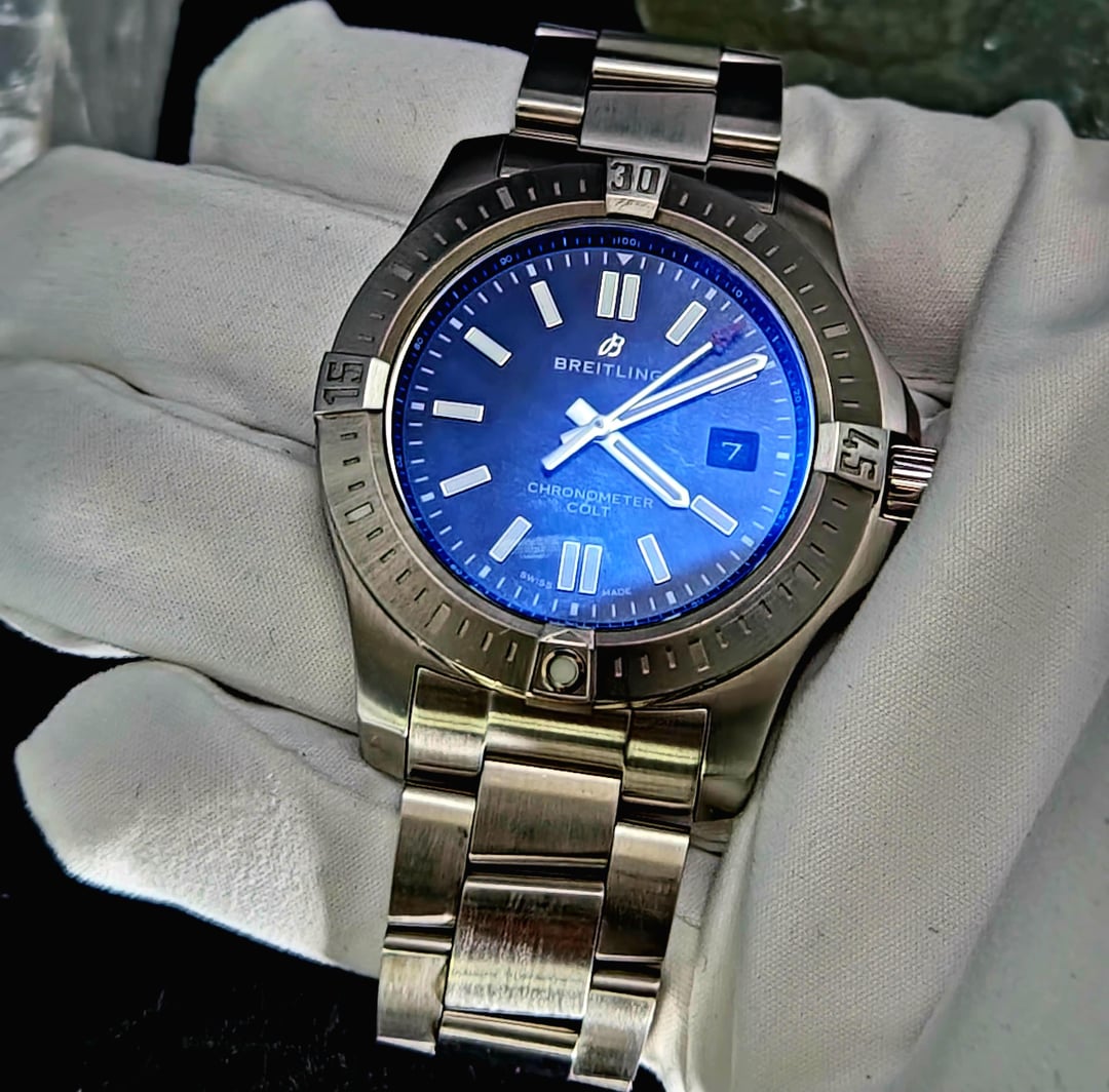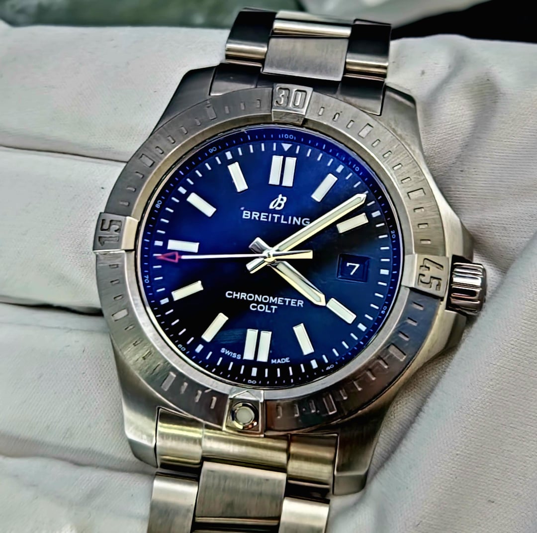 FS: Breitling Colt Automatic A17388. Comes with the original box, warranty card, link, and travel case. Watch is in very good condition with light signs of wear. This watch is excellent for both formal and casual occasions. Perfect timepiece for any collection. Price: $2,000 + label Location: Chicago, IL Model: Colt Size:44 mm Reference number: A17388 Movement: Automatic Case material: Steel Bracelet material: Steel Timestamp: [https://imgur.com/a/N0fMkuB](https://imgur.com/a/N0fMkuB) Album: [https://imgur.com/a/taGQArA](https://imgur.com/a/taGQArA) Delivery: Overnight FedEx fully insured within 2 business days of cleared funds. Payment Options: Wire transfer or Zelle. Deal in confidence as I have many references. Feel free to contact me with any questions.