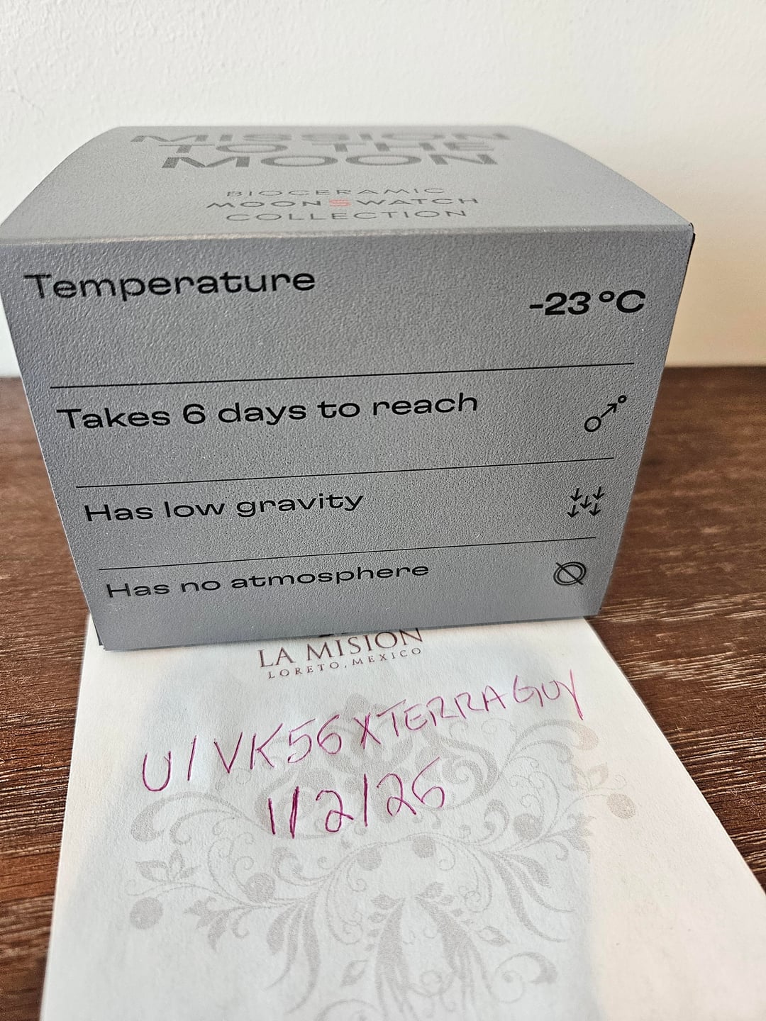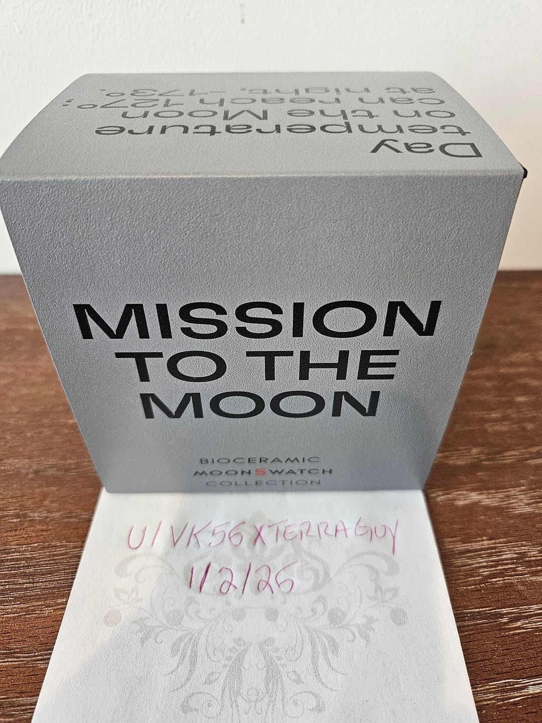 Hello watchex! Selling this Swatch mission to the moon Was gifted for Christmas but already have it. Including sales receipt and card with sale date 8/19/25 from the Swatch store on Las Vegas, NV. The watch has only been removed for the photos and is unworn. Asking $225 shipped UPS 2nd day. Payment method PayPal F&F or G&S +3%