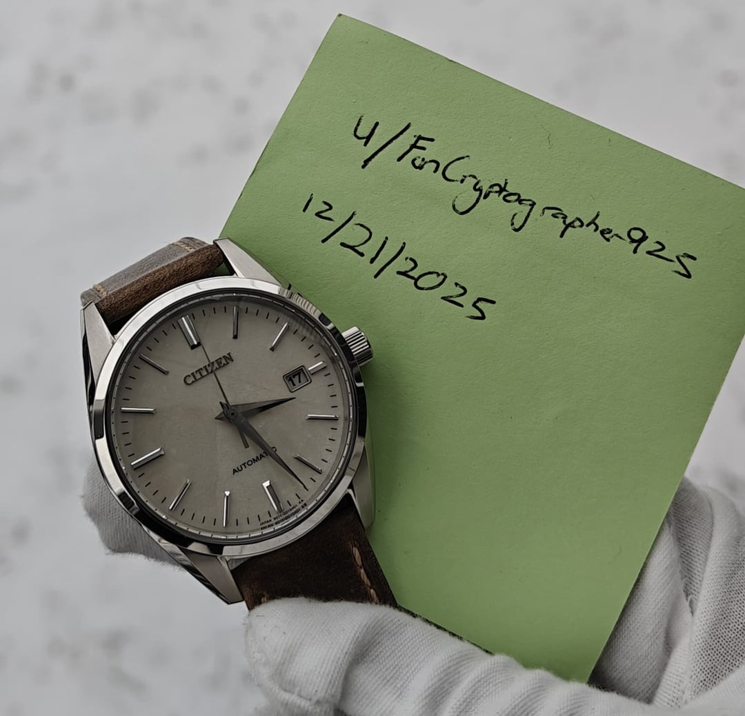 # Citizen. Silver Leaf Lacquer. Mint. Comes with Extra straps. 38.2mm Dial: Silver Leaf Pattern Movement: 9011 calibre Automatic Condition: Good condition (9.5/10) Accessories: Comes with original OEM Deployment strap and other AM Straps Comes with Inner & Outer Box, 1 OEM Deployment strap, 4 AM straps, Manual and Tags Price: $610 plus shipping from PA, USA Can do PayPal FnF, Zelle and Wire! Follow me on Instagram and Reddit: Instagram: [https://www.instagram.com/thelastsecondbyom](https://www.instagram.com/thelastsecondbyom) Thank you