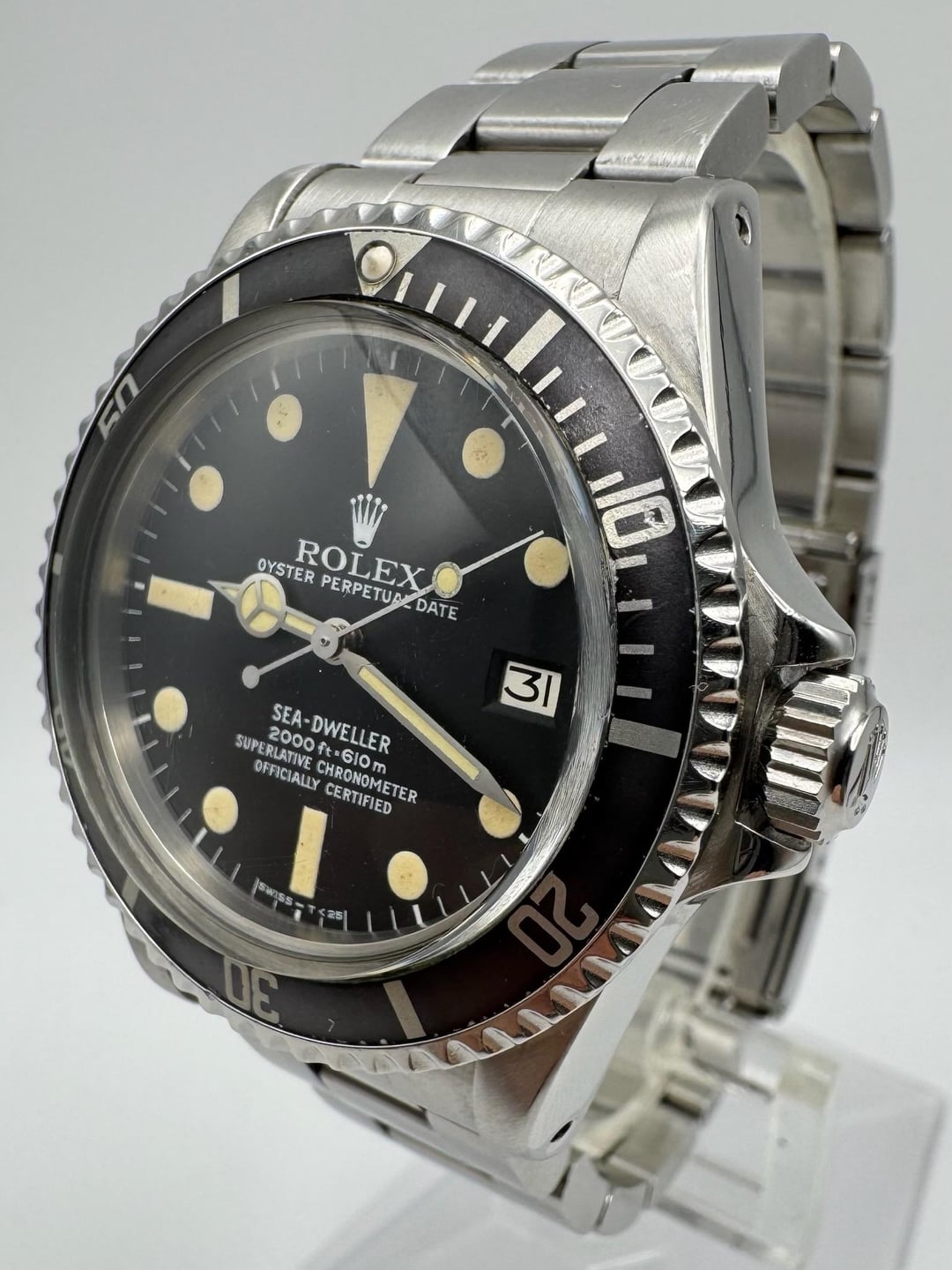 This vintage Rolex Sea-Dweller reference 1665 is presented in all-original condition and remains a highly respected example of Rolex’s professional dive watch heritage. Crafted in stainless steel, the case retains thick, sharp lugs and shows only minimal signs of wear, reflecting careful ownership over the years. All case numbers are crisp and fully intact, with a 6.1 million serial placing production around 1979. The original dial displays a beautifully even yellow patina across all hour markers, complemented by matching hands. The tritium lume remains responsive under UV light, confirming originality and consistency throughout. Completing the classic profile is the correct fat-font bezel insert, which has naturally faded to a soft grey tone and features a matching pearl pip, adding depth and character to the watch. The original Oyster bracelet is in excellent condition with 11 links and shows almost no stretch, which is exceptional for a piece of this age. Additional links can be provided upon request. The movement was professionally serviced in December 2025 and is running properly. This Sea-Dweller is accompanied by its original box and papers, making it a compelling and well-preserved example of a landmark Rolex tool watch. **Reference:** 1665 **Size:** 40mm **Year:** 1979 📜 Includes: Original box & papers 💵 Price: $20,900 + FREE overnight shipping with FedEx fully insured. [Timestamp](https://imgur.com/a/5p5OBEp) 🔗 Other Listings: [profile](https://www.reddit.com/u/BoghossianJewelry/s/vm81HAdB7o) | [watchrecon](https://www.watchrecon.com/?query=BoghossianJewelry&last_days=0) 🔥 Follow us on [Instagram](https://www.instagram.com/bogossiajewelers) 📍 Location: New York 🔒 Authenticity: 100% guaranteed, buy with confidence. We have 160+ reviews on Chrono24 with 180+ transactions, and Excellent rating score on Trustpilot. Visit our [profile](https://www.reddit.com/u/BoghossianJewelry/s/vm81HAdB7o) for links and references. 📦 Domestic Shipping: Ships with FedEx overnight, within 24 business hours of payment, from New York, NY to CONUS. The shipment is fully insured against damage, loss or theft. 🌍 International Shipping: Incurs an additional $100. 💳 Payment: Crypto (+2%), PayPal/CC (+4%), Web, or Face-to-face deal in NY. 🔐 [Seller References](https://bogossia.com/authenticity) 📸 [IG: @bogossiajewelers](https://www.instagram.com/bogossiajewelers)