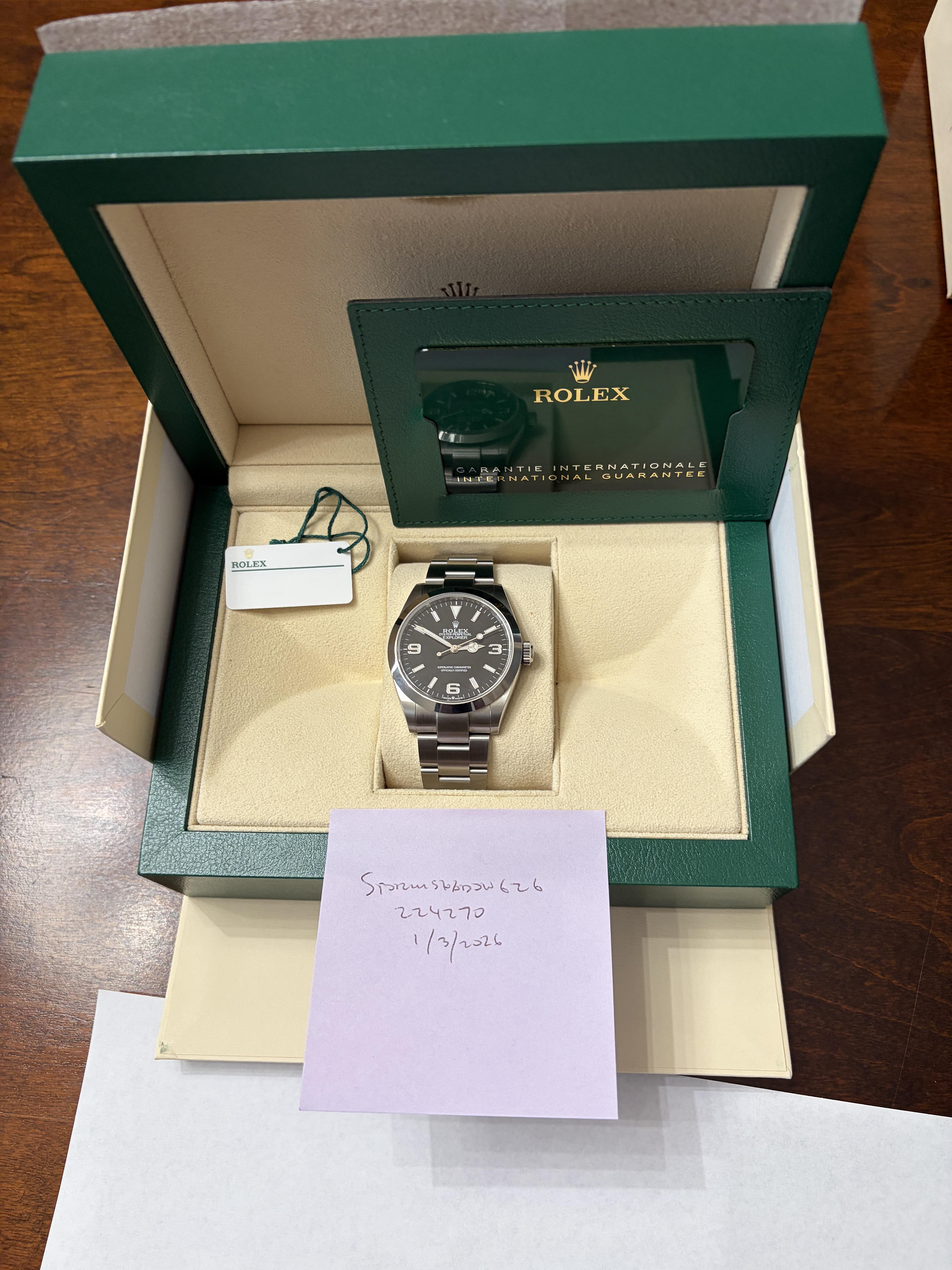 Timestamp: https://imgur.com/a/nSMuxLt Pictures: https://imgur.com/a/oRozWnE Up for sale is my Rolex Explorer 40mm 224270. Worn in rotation with other watches, it’s in excellent condition. Very few light scuffs on the clasp. Keeps excellent time. Still under Rolex 5y warranty. Comes with everything you see in the pics: white tag, booklets, all links including ez link, and the original warranty card dated in 2023. Asking $8500 shipped in the USA. Methods of payment include Zelle, wire, Venmo. Plenty of feedback on eBay and other watch forums. Thanks!