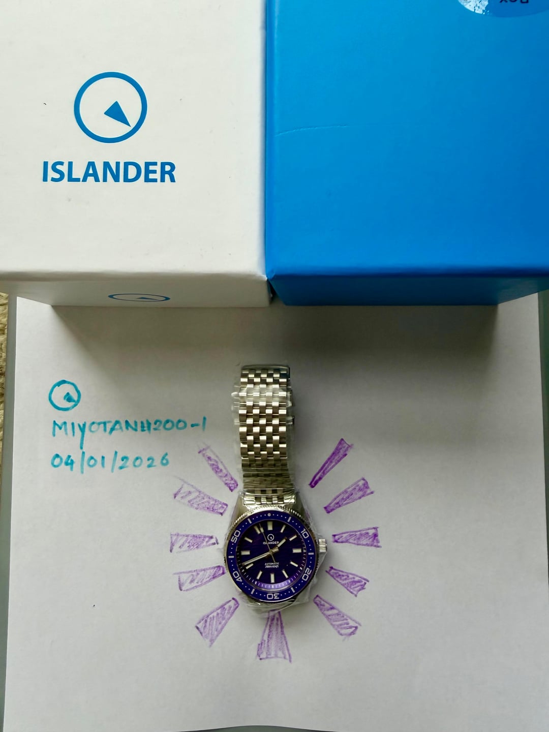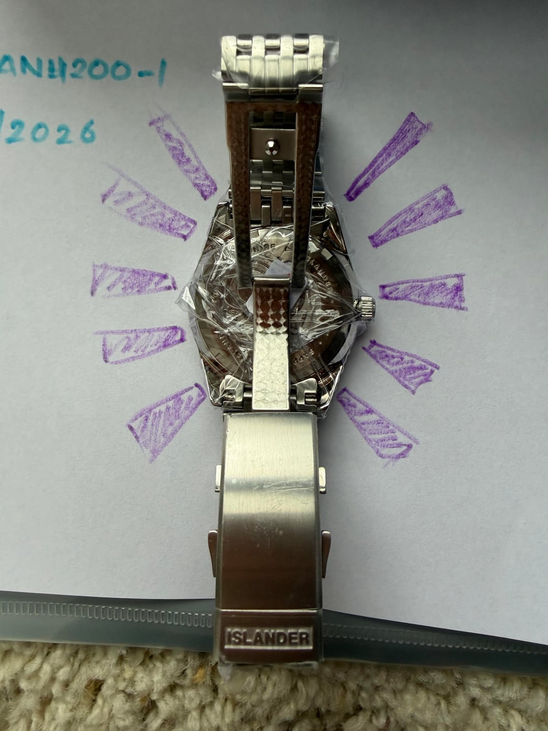 Up for sale is an unworn, unsized and still in wrapper Islander Northport 37mm in a gorgeous purple ripple dial. Purchased it as a gift but looks like they had something else in mind 😄 Retails for 429 USD and this dial color is out of stock. Asking for $299 + CONUS label. I can accept Venmo, Zelle or PayPal. * Movement:Miyota 90S5 Hi-Beat Automatic (self-winding, hand wind, hacks) * Case:Stainless Steel, 37mm x 11.7mm, 43.5mm lug to lug * Back:Solid embossed screwdown caseback * Crystal:Flat sapphire with inner AR * Band:Stainless steel 7-link, tool-less micro adjust deployant clasp, 20mm * Water Resistant:200 meters * Weight:145 grams
