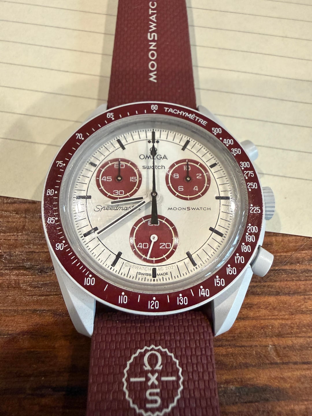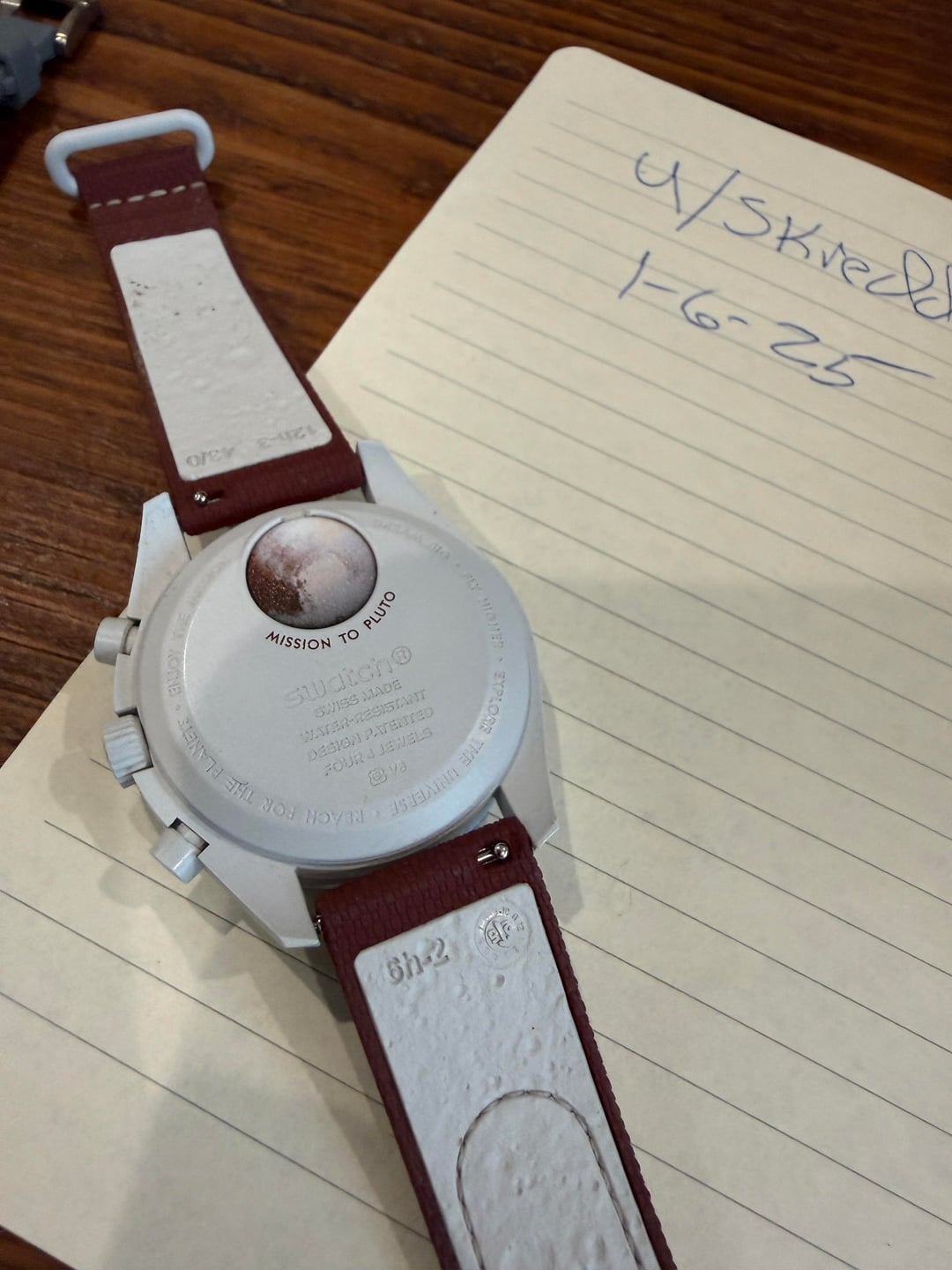 First time seller here. Happy to answer any questions. I’m selling my lightly used Mission to Pluto. No papers or box. My friend got it for me at the boutique in Honolulu in Sept 2023 and I threw out the kit before I knew I should hold on to it. Ive worn it a handful of times and it’s not getting the wrist time it deserves. Selling it to fund some other watch buys (including the Murph I just ordered). Asking $225, which includes CONUS shipping and two additional straps: a Velcro one from Swatch and a rubber one from Horus. I’m taking a bath on the straps but know I can’t ask a lot because I don’t have papers or box. Happy to answer any questions especially given that I’m a new seller here. No trades please.