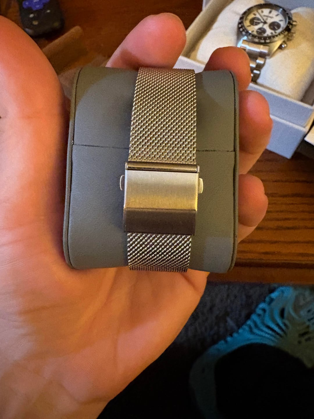 Looking to trade my hamilton intramatic. While i’m not dying to let it go, my favorite part of this hobby is trading. I have this trade valued at $1300. Good condition, the mesh bracelet is an after market uncle bracelet and the leather is original. Runs great, comes with box and a jomashop warranty card but I think that’s expired. I used to own a green Mido TV big date that I miss dearly and i’m willing to trade down for one of those. Thanks!