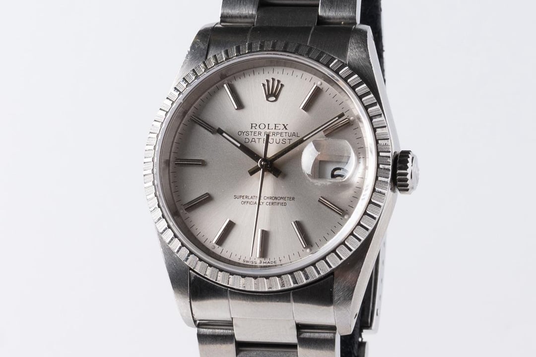 | 2004 ROLEX Datejust 16220 Stainless Watch - Engine Turn Bezel - Silver Dial - estatevault (6956) |